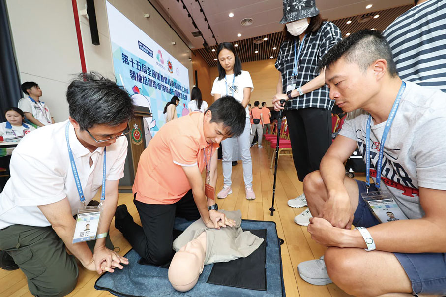 此外,超過1,500名全運會義工領袖自三月起接受「消防處社區應急先鋒計劃」培訓,學習防火及應急知識,以及施行心肺復甦法(CPR)和操作自動心臟除顫器(AED)的程序,以提升應急能力,讓他們能夠於全運會舉行期間協助賽事順利進行。