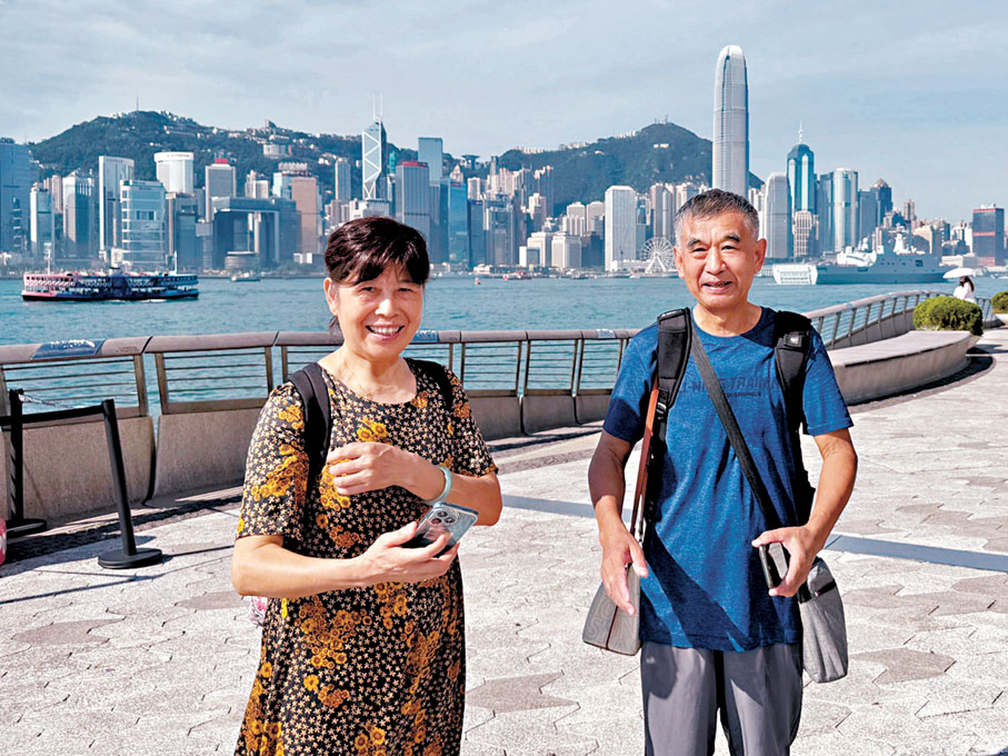 趁國慶黃金周假期從深圳來港旅遊的陳氏夫婦,意料之外地見證了艦艇駛入維港,興奮之情亦溢於言表。「我們本來只是來香港逛逛,沒想到能看到祖國軍艦,非常驚喜。國慶即將到來,我們深刻感受到香港與內地的緊密聯繫。」他們還請記者幫忙合照,記錄這珍貴一刻。