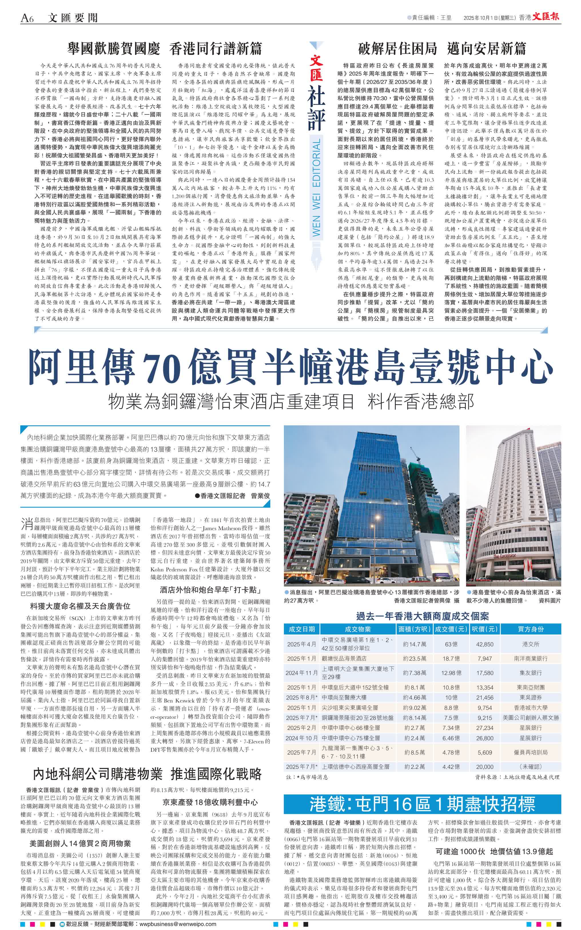 在新加坡交易所(SGX)上市的文華東方昨刊發公告回應傳媒查詢,表示注意到近期媒體猜測集團可能出售旗下港島壹號中心的部分權益,集團確認現正磋商出售該廈部分辦公空間的可能性,惟目前尚未落實任何交易,亦未達成具體出售條款,詳情待有需要時再作披露。