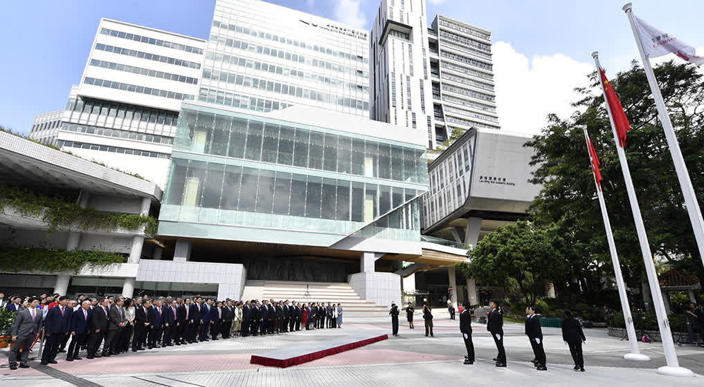 香港城市大學(城大)在城大廣場舉行國慶升旗儀式,教育局副局長施俊輝、城大校董會副監督鍾瑞明、主席魏名成(明德)、副主席蔣瑞福、等與教職員、學生、校友等約200 位大學成員出席儀式。升旗儀式由城大組成的護旗隊負責。城大指,一直積極響應政府推動「留學香港」品牌,建設香港成為國際專上教育樞紐,將繼續致力於拓展國際聯繫,為學生建立「背靠祖國、立足香港、面向世界」的多元學習環境,裝備他們成為具備全球視野的未來領袖。