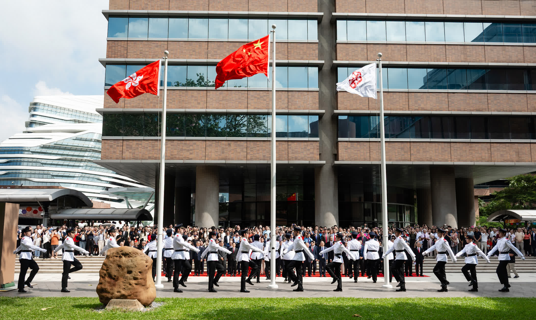 港大指,今年的國慶升旗儀式別具深意,適逢港大建校115周年,儀式彰顯大學百年學術傳承及港大推動香港與國家發展進程中的關鍵角色。升旗儀式亦象徵港大秉持追求學術卓越,致力推動國家發展,為人類未來開拓新篇。展望前路,港大將繼續秉持使命,啟迪師生推動高質量發展、促進文化交流,建構知識惠澤香港、貢獻國及影響世界。
