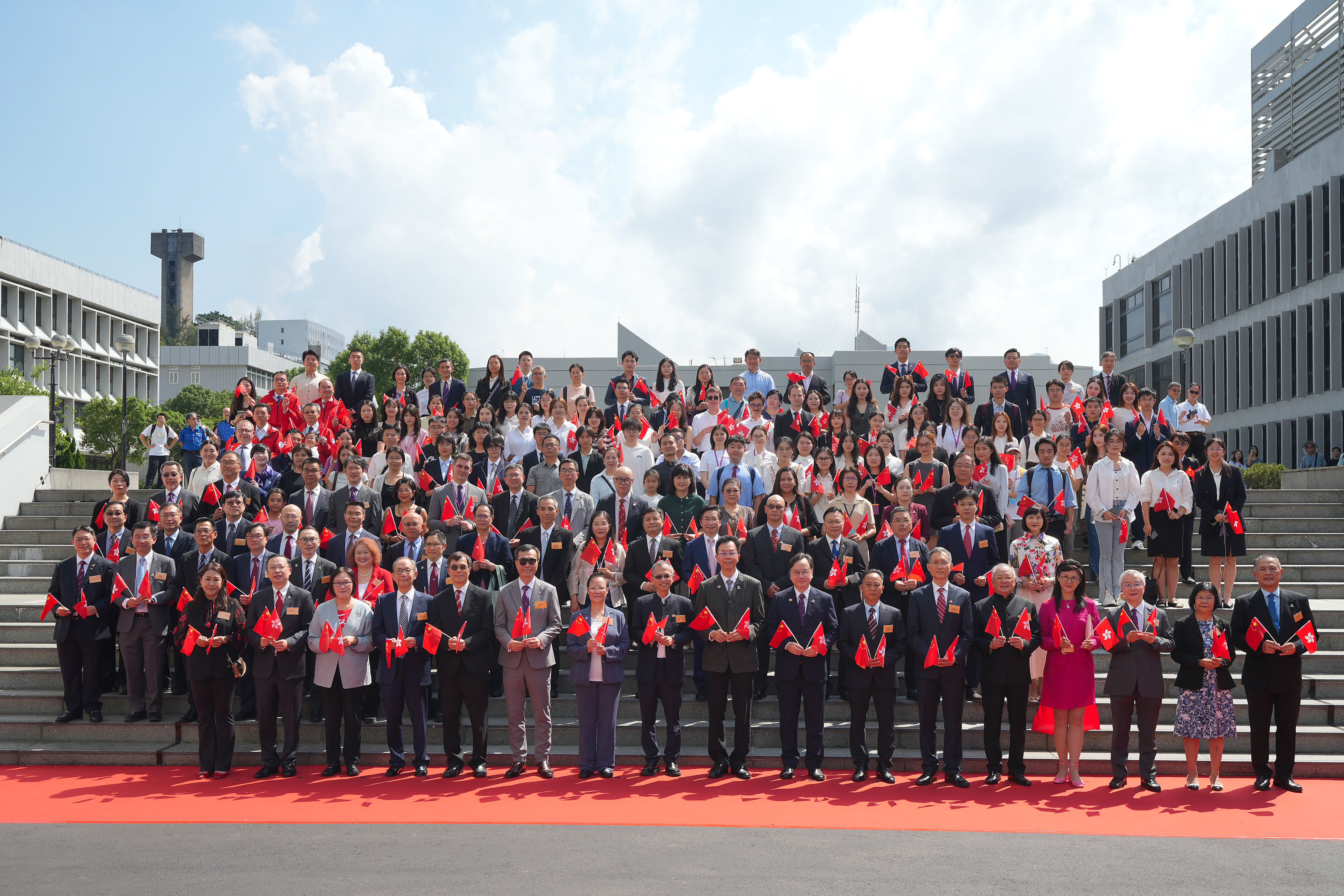 外交部駐香港特別行政區特派員公署條法部主任周倩參贊蒞臨擔任主禮嘉賓,科大副監督陳祖澤、顧問委員會主席廖長城及校長葉玉如聯同科大校董會成員、顧問委員會委員、大學管理層、教職員、學生、校友及其家屬逾400人親臨現場參與慶祝典禮,另有逾萬人次在網上觀看直播。參與典禮的嘉賓和科大成員共同見證國旗、區旗及校旗於火鳥日晷雕塑前冉冉升起,祝願祖國國運昌隆,香港繁榮穩定。
