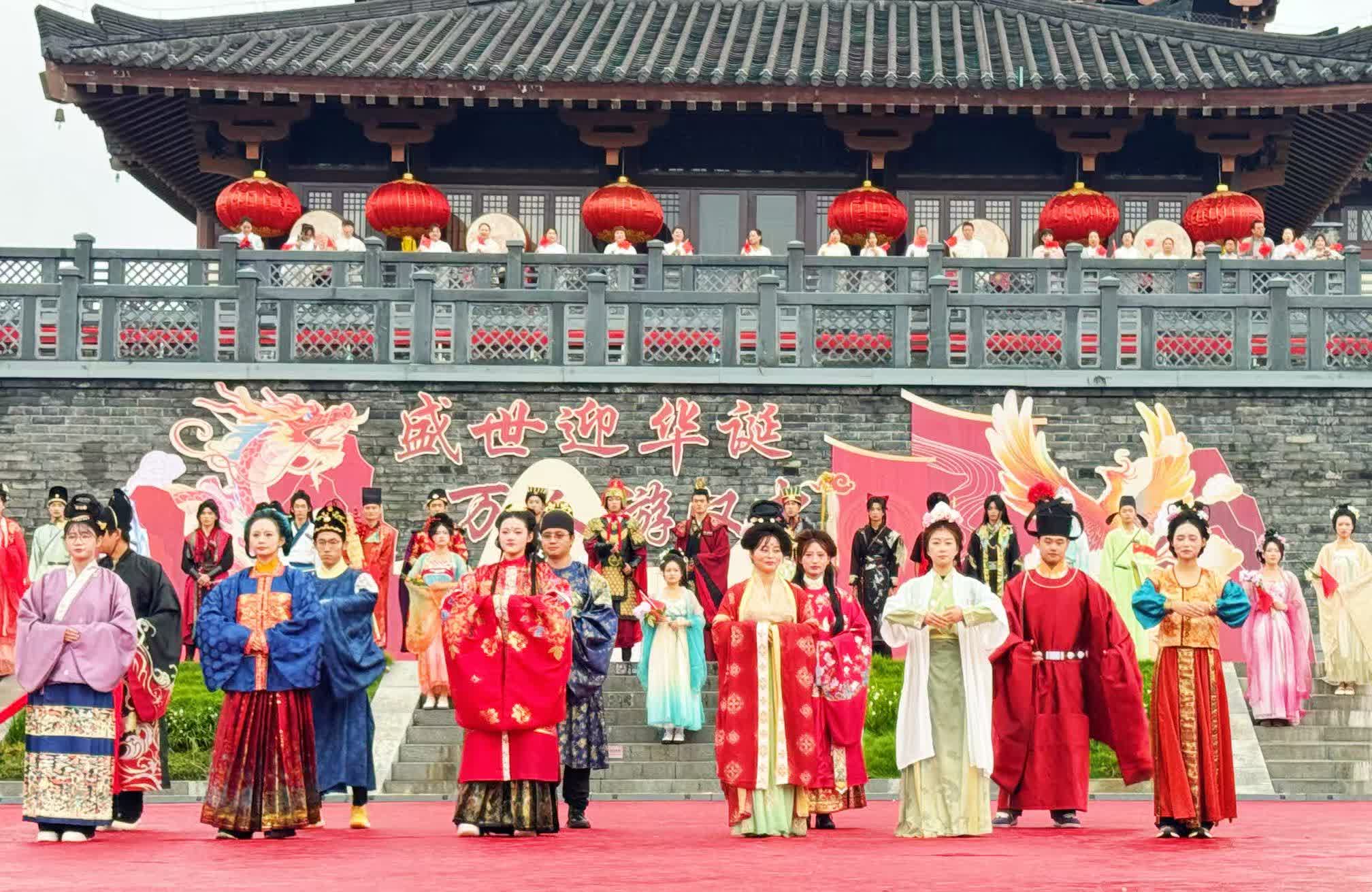 當天上午的漢服巡遊活動中,百餘名漢服愛好者和「劉邦」「韓信」「諸葛亮」「張良」「蕭何」等漢中文旅IP人物還前往興漢新區漢人老家街,通過集體造型展示、傳統舞蹈表演與遊客互動的方式,展現漢文化活力,並向全國遊客發出「歡度國慶 潮遊漢中」的邀約,讓市民遊客共享國慶佳節的歡樂氛圍。