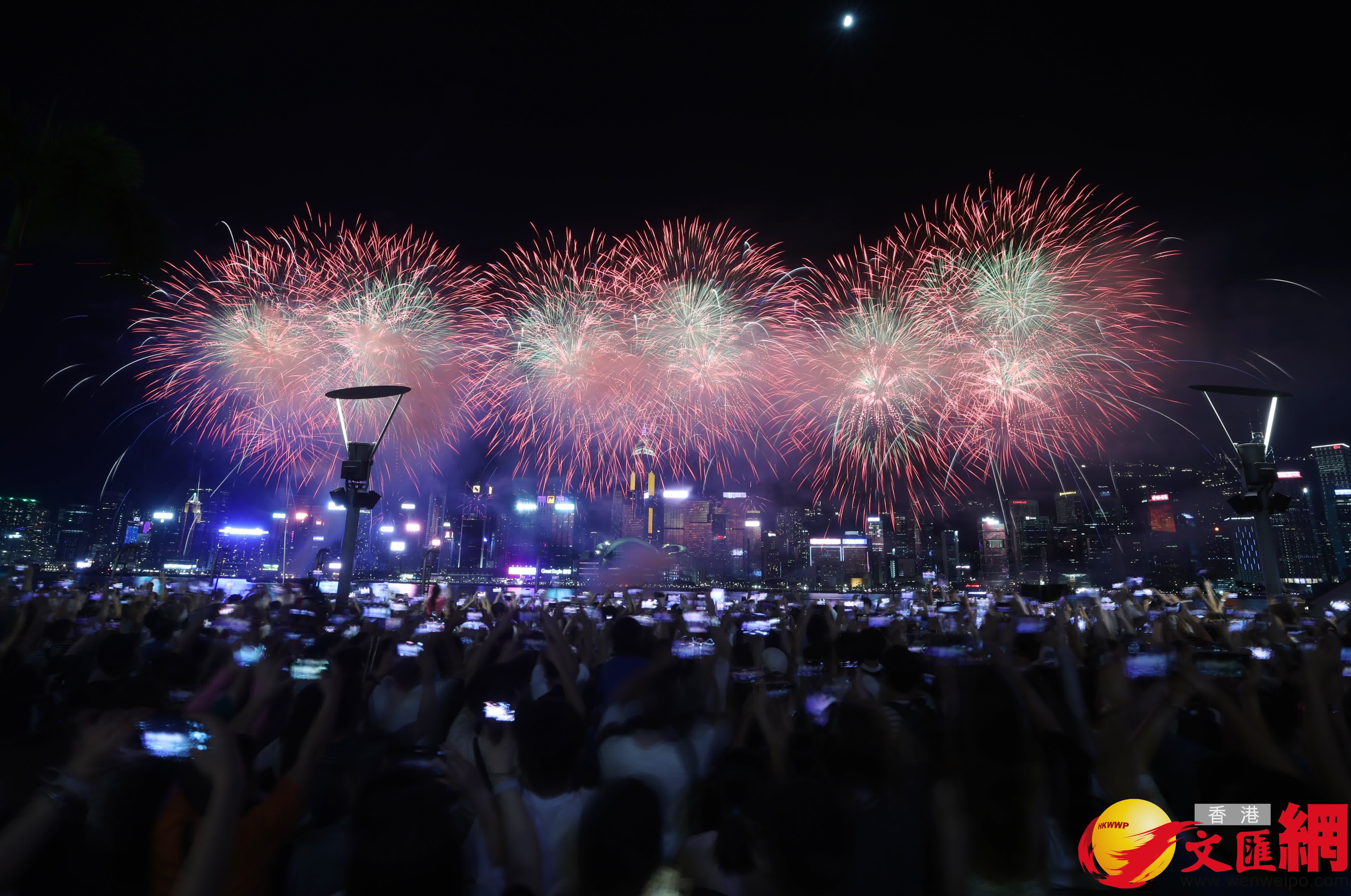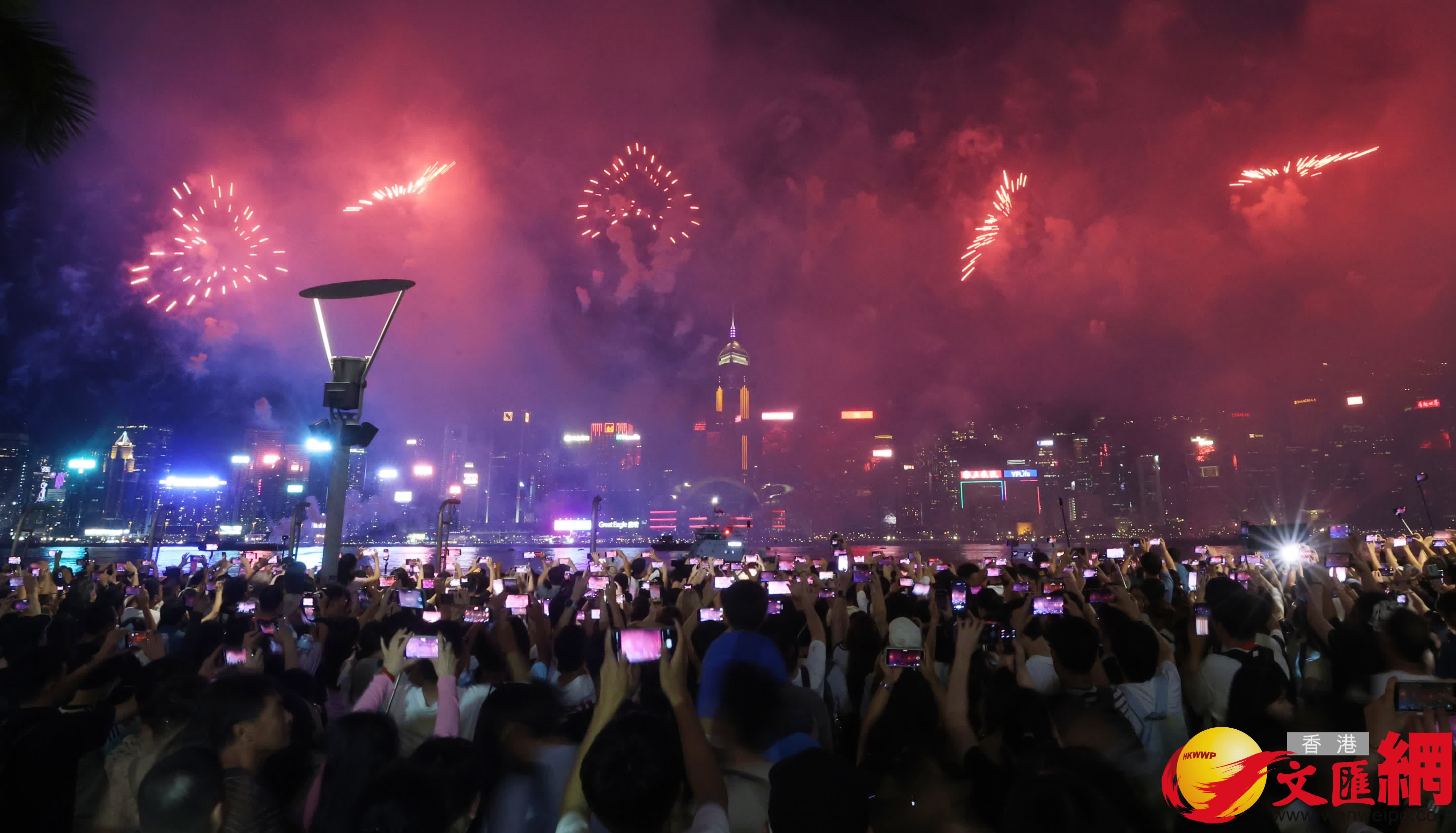 國慶煙花匯演2025於今日(10月1日)晚上8時在維港上空舉行,主題為「維港煙花 閃耀中華」,分為八幕,各具特色,歷時約23分鐘,合共發放逾3萬枚煙花。璀璨煙花照耀着維港,十分壯麗,不少人紛紛以煙花為背景打卡留念。