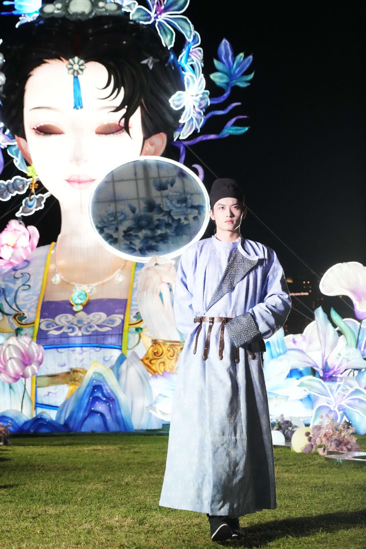 當晚的華服走秀尤為矚目,十二套服飾依朝代順序登場,從戰國袍、漢服到明清馬面裙、旗袍,一一展現華服演變。男裝英氣、女裝婉約,北京服裝學院師生的設計則將祥雲、纏枝蓮等古典紋樣與現代剪裁融合,在光影映照下營造跨越時空的效果。表演期間,觀眾紛紛舉起手機錄像,現場氣氛熱烈。