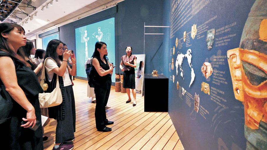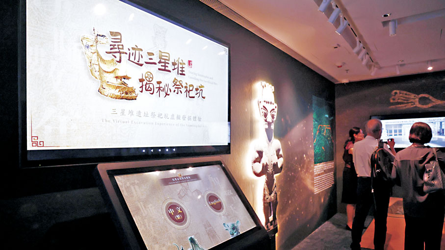 當科技不斷將人們帶向未來,探索歷史細節與縱深的方式也在發生日新月異的改變。「浮海探蜀:尋覓三星堆·金沙沉浸式考古VR特展」已於日前在香港海事博物館正式啟幕。展覽中有不少珍貴文物,更以VR及多媒體互動裝置,讓公眾全方位體驗三星堆的發掘過程,深入認識古蜀青銅文明。 ●文、攝:香港文匯報記者 陳藝