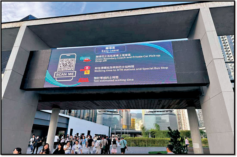 啟德體育園現場亦設置了配備大型電子屏幕的「資訊音樂站」,顯示最新交通資訊及賽事安排,並提供「離場易」二維碼供市民掃描使用。