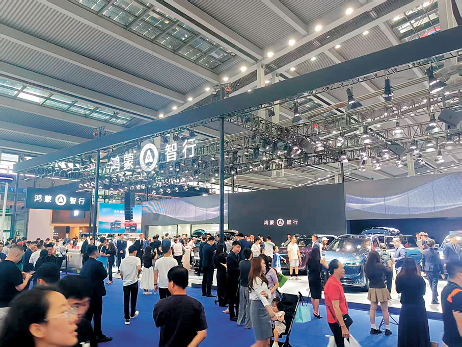 恰逢國慶和中秋雙節消費旺季,「2025深圳國際車展」昨日在深圳會展中心開幕,吸引了鴻蒙智行、東風、領克和比亞迪等80餘個汽車品牌和超800款新車參展。記者在車展上看到,華為鴻蒙智駕系統被不少國產新能源車採用。不少港人趁國慶假期前來觀展,看重新能源車的智能駕駛和續航里程等性能。新能源汽車在車展上熱銷,有港人購買近十輛領克新能源車用於深圳公司和員工使用。●香港文匯報記者 李昌鴻 深圳報道