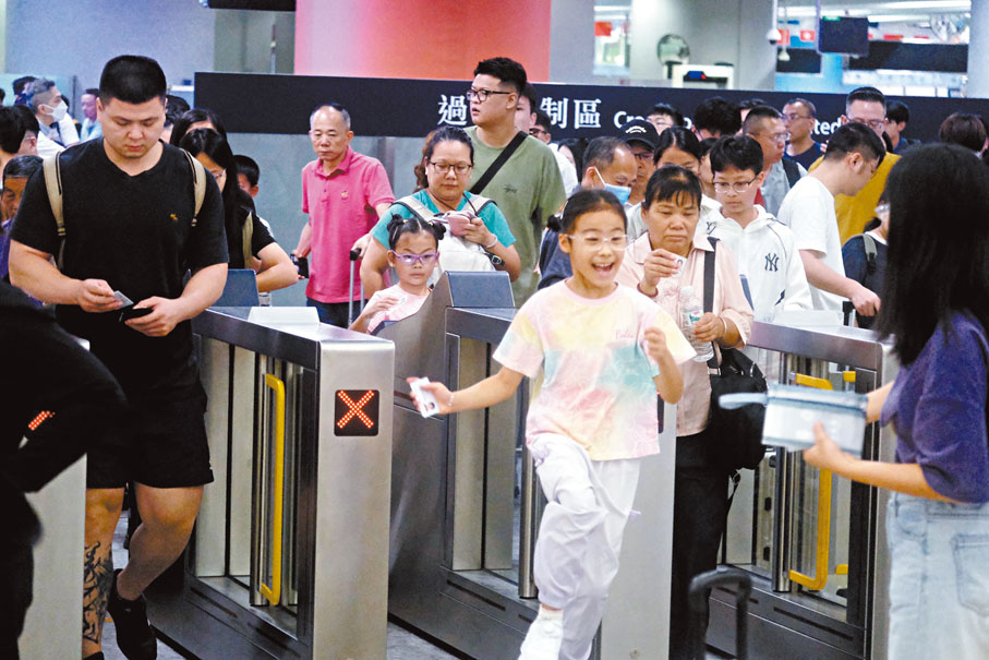 入境處早前預計,8天內地國慶黃金周假期合共約876萬人次經各海、陸、空管制站進出香港,昨日為陸路入境高峰期,本月4日則為陸路出境較為繁忙的日子。