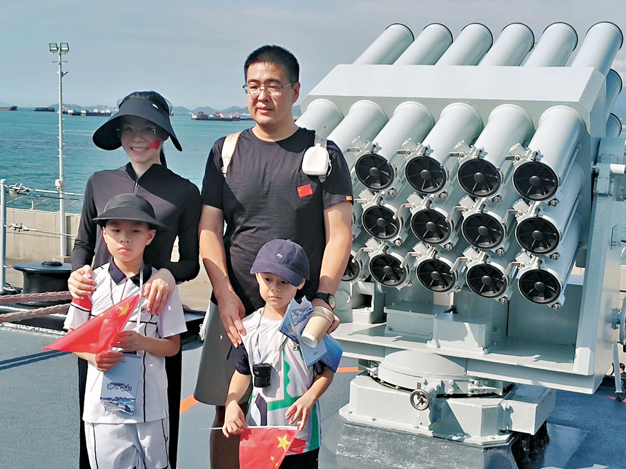 梁小姐受訪時表示,她和丈夫覺得要加強孩子的愛國主義教育,所以特意帶着兩個小朋友來參觀軍艦。她說,孩子們雖然在國際學校就讀,但學校也會教授愛國方面的內容。「孩子還對我說想去金紫荊廣場看升旗儀式」,讓她感到驚喜。