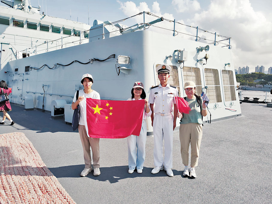 由海軍戚繼光艦和沂蒙山艦組成的海軍83艦編隊昨早舉行升旗儀式(見另稿)。升旗儀式結束後,戚繼光艦和沂蒙山艦隨即開展艦艇開放活動,吸引眾多香港市民前來參觀。市民們懷着期待的心情,有序登上這兩座「海上流動大學」,隨艦學員熱情為大家講解訓練艦的構造與各類艦艇裝備。艦上官兵還現場展示輕武器操作、海軍繩結技藝及信號旗語等項目。部分市民與官兵自發唱起《歌唱祖國》等經典歌曲,表達對祖國的熱愛與祝福,現場氣氛熱烈而祥和。