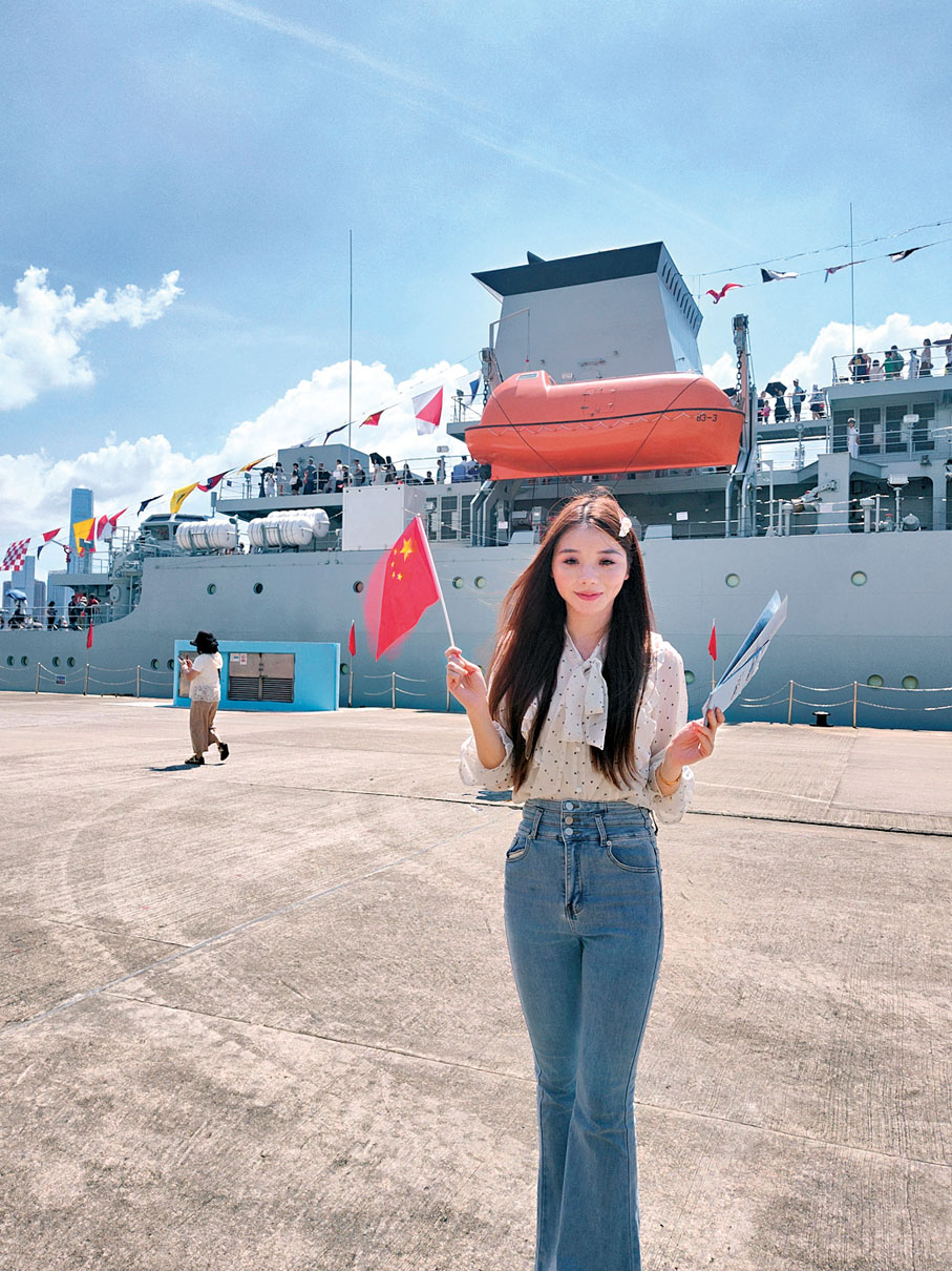 來自廈門的遊客林小姐是第一次參觀軍艦,「這與隔着電視看閱兵的感受完全不同,那種直觀的震撼感會更強。」林小姐覺得解放軍戰士特別帥氣,更和他們有簡單交流,感覺他們特別有禮貌,很照顧參觀者,「真的不愧是人民子弟兵。」林小姐今次特意拜託親朋好友幫忙搶票,更專門來港參觀軍艦,順帶旅遊,「今日(指昨日)是國慶日,參觀軍艦可說是一種特別的慶祝祖國生日的方式。」她覺得這類活動很有意義,希望大家都能參加,親身感受祖國現在的發展有多好。她並祝願祖國繁榮昌盛,發展愈來愈好。
