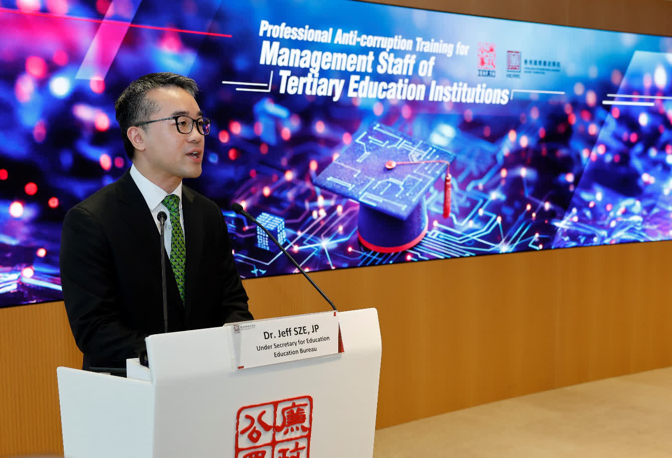 主禮嘉賓教育局副局長施俊輝於課程開幕禮致辭時表示,要達成將香港發展成為國際專上教育樞紐與國際高端人才集聚高地目標,特區政府高度重視維護本港專上教育界的誠信、素質與聲譽,「各院校共同努力,為維護香港專上教育的聲譽,建立健全的防貪機制,貫徹公平、公正的原則,攜手打造清廉校園。」