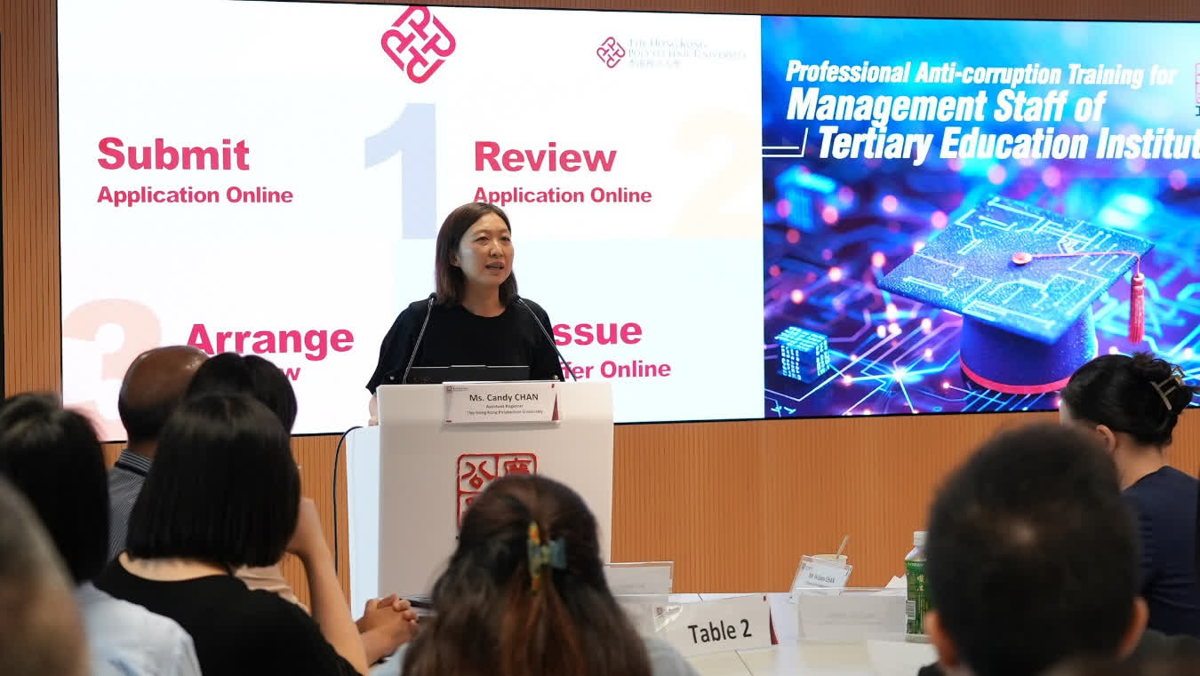 廉署防止貪污處處長卓智欣表示,參與課程的均是收生程序管理人員,不僅是制度執行者,更是教育價值守護者,「廉署於今年6月推出《大專院校收生防貪指南》實踐課程。我們很高興看到各院校積極回應,分享使用指南的經驗,進一步強化各大專院校收生程序中的防貪系統和加強各大專院校收生人員的防貪意識與應對能力。防貪需要整個行業的協作。廉署希望通過這次培訓,協助各院校建立更透明、公正、高效的收生制度,進一步促進各院校之間的交流,從而提升香港高等教育的國際聲譽與公信力。」