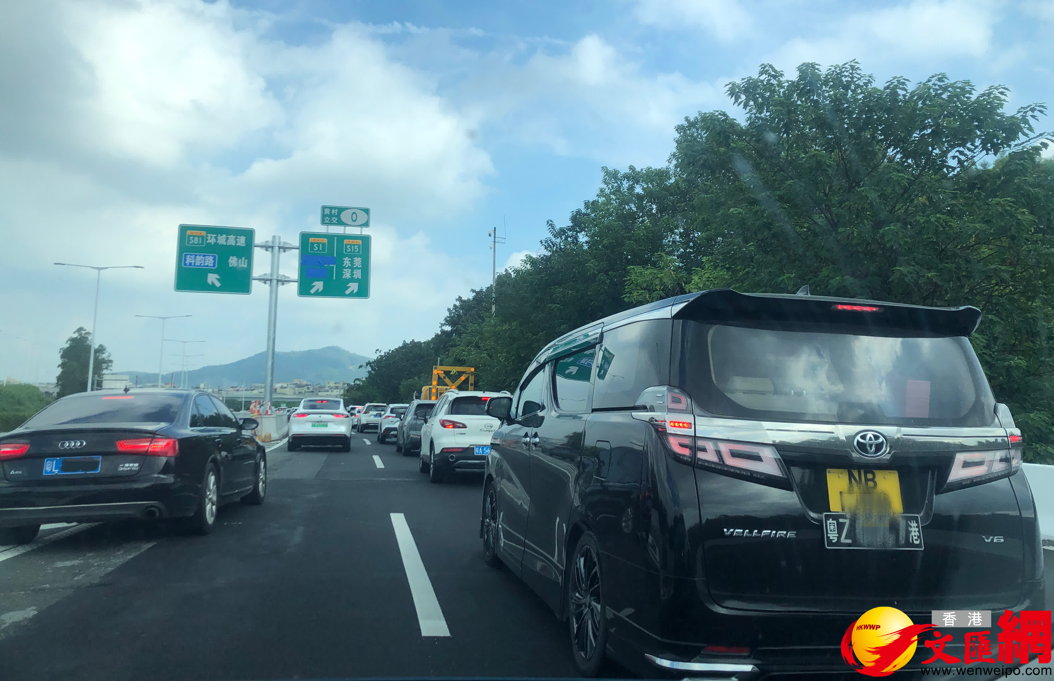 記者2日上午11時半左右駕車從廣州天河區前往增城區,途經的華南快速幹線由於右側車道發生交通事故而堵車近5公里;之後經過的濟廣高速也有多路段因車流量激增而緩慢行駛,平時花15分鐘通行的路段要耗時半小時以上。