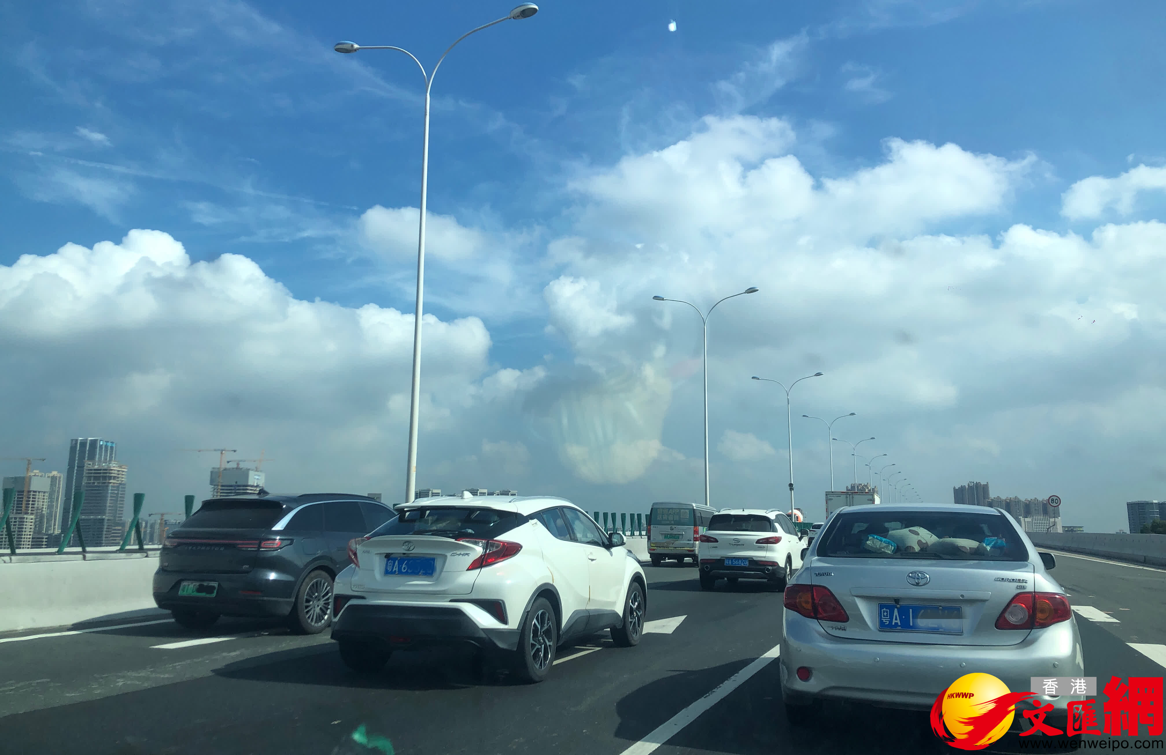 「10月2日依然迎來探親、出遊車流高峰,小型客車佔比較高。」廣東省交通運輸廳有關負責人表示,港珠澳大橋在10月1日的車流量約2.14萬車次,同比增長逾21%;而深中通道、虎門大橋、南沙大橋的車流量分別逾17.2萬、近15.8萬、近20.4萬車次,同比分別增長近11.3%、15.2%、15.8%。預計這些熱門路段的車流量在2日繼續保持高位運行態勢。