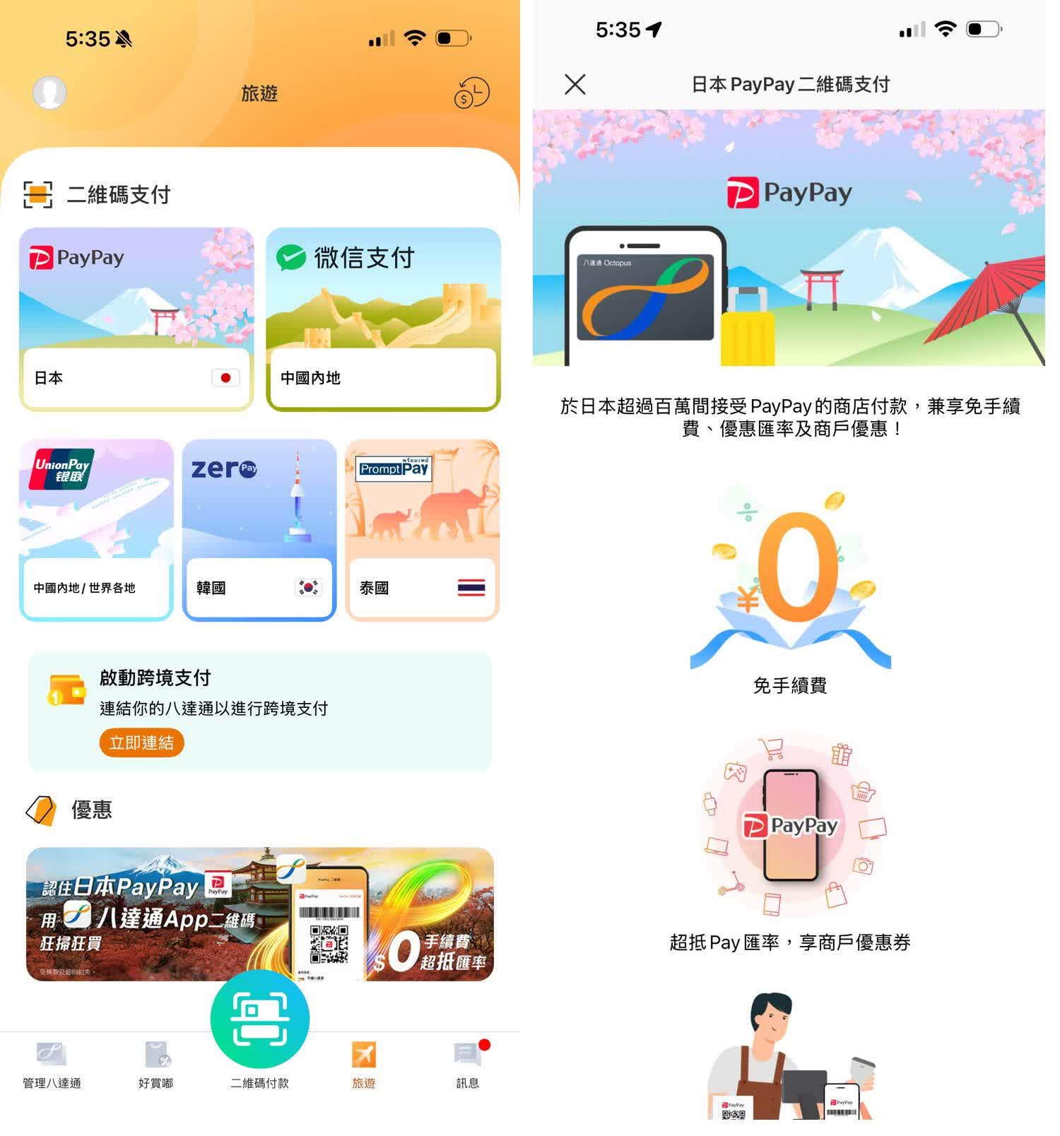 八達通銀包已升級至Plus及Pro級別的用戶,更新八達通App後,即可於「旅遊」頁面開通PayPay服務。透過銀行App、轉數快或現金充值,轉賬至八達通銀包,再於日本附有PayPay商標的線下商戶出示或掃瞄二維碼,便能完成付款。