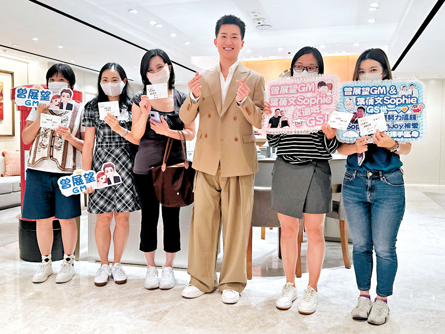 GM昨日獲邀為珠寶店擔任一日店長,並戴上寫有「520」(我愛你)字句的金鑽頸鏈順勢向女友Sophie隔空傳情;更不忘現場為選中的幸運粉絲送上親筆簽名的「密語」明信片,感謝粉絲的支持。