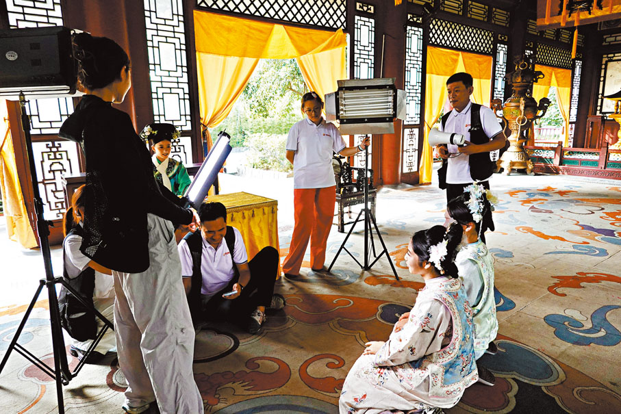 在橫店影視城清明上河圖景區,從小青睞香港古裝武俠劇的「95後」女生張琪琪走進影視拍攝現場,過了一把「女俠」癮。她經歷了從開機儀式到導演說戲,再到專業演員搭戲的完整流程,這讓其更了解劇組的運作方式。