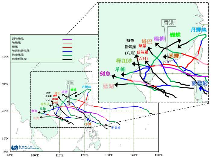 今年影響香港的熱帶氣旋數目較正常偏多的主要成因,可歸納爲一、海洋條件:今年6月至9月期間西太平洋海面溫度較正常偏高。尤其是西太平洋暖水區面積較大,廣闊的暖水區提供充足的熱能及較高的大氣不穩定度,促進積雲對流發展,有利熱帶氣旋形成。二、大氣環流:今年6月至9月期間副熱帶高壓脊較多時間呈現偏西伸展的態勢。此配置不但降低了熱帶氣旋於西北太平洋轉向偏北路徑的機會,亦使副熱帶高壓脊南側的東風引導氣流在菲律賓附近海域形成有利的通道,讓在西北太平洋或南海形成的熱帶擾動或熱帶氣旋移向南海北部,提高影響華南沿岸及香港的機會。