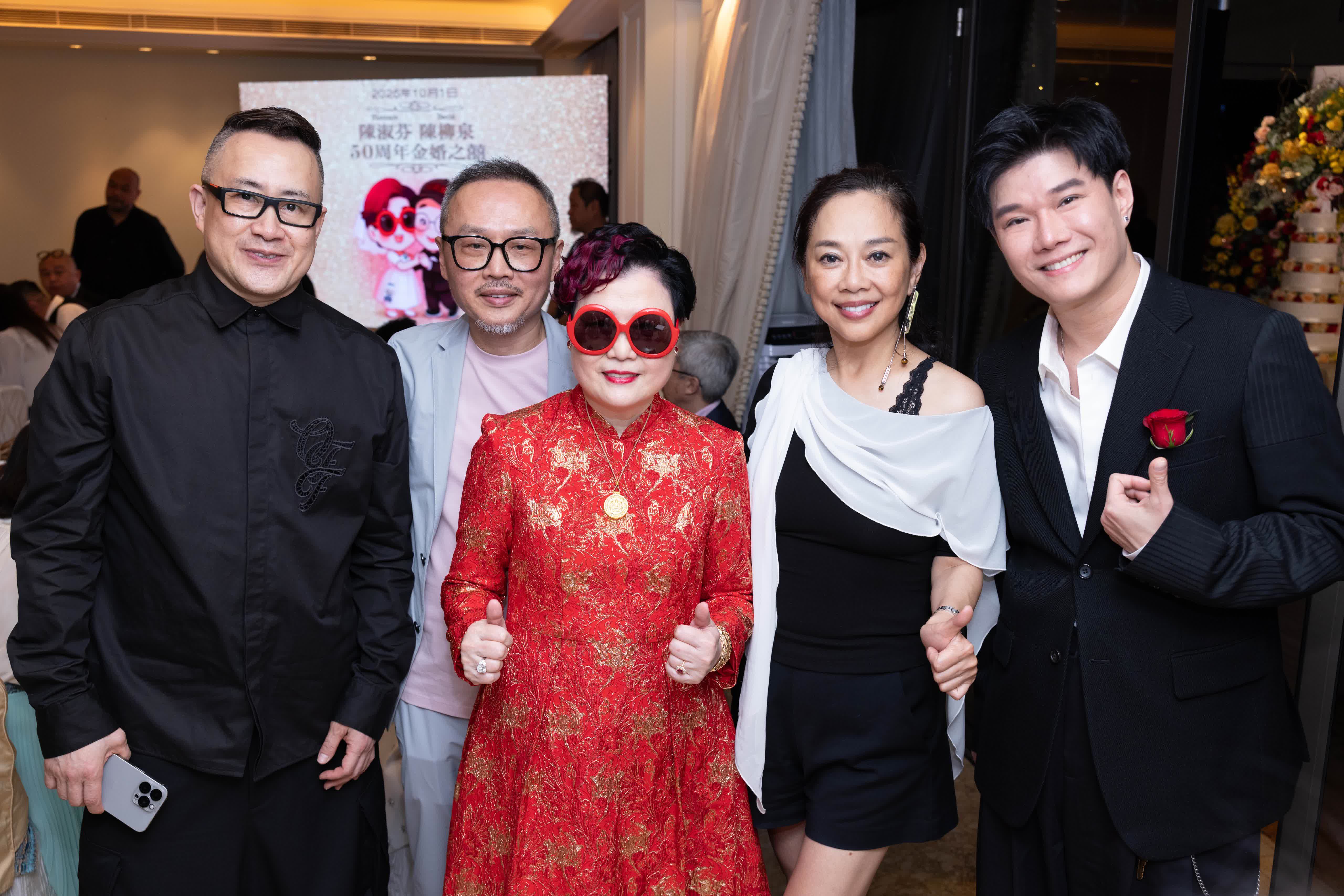 香港文匯報訊(記者 子棠)陳淑芬(陳太)和丈夫陳柳泉迎來金婚之旅,日前(10月1日)邀請了一班至親好友出席「Florence and David 50周年金婚之囍」,包括他們的家人、胡楓(修哥)、狄波拉(拉姑)、姜大衛、李琳琳、唐鶴德(唐唐)、何麗全、奚仲文、張叔平、陳華國、Wing Shya、馬榮成、黎筱娉、顧紀筠、張與辰、陳松伶(松松)、謝天華和身兼主持的林盛斌 (Bob)等,一起分享這個重要的大日子。張智霖、蔡一智和張鐸雖身在外地,也預先錄製了視頻恭喜主人家;鄭欣宜則送上蛋糕祝賀。