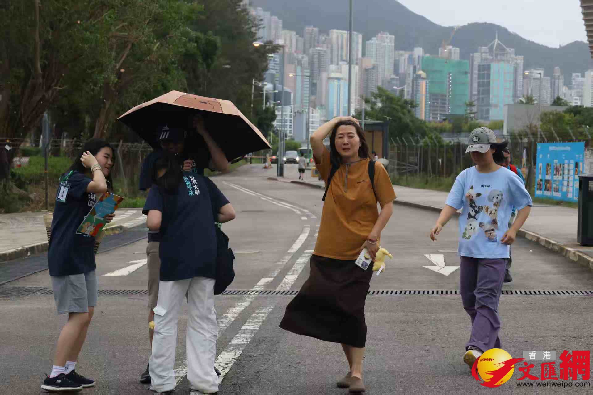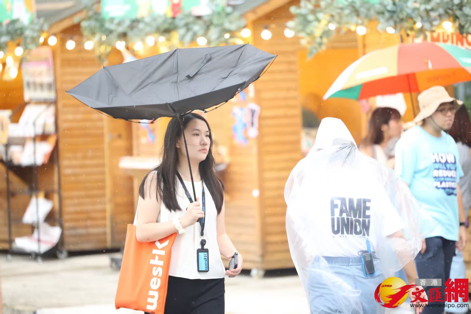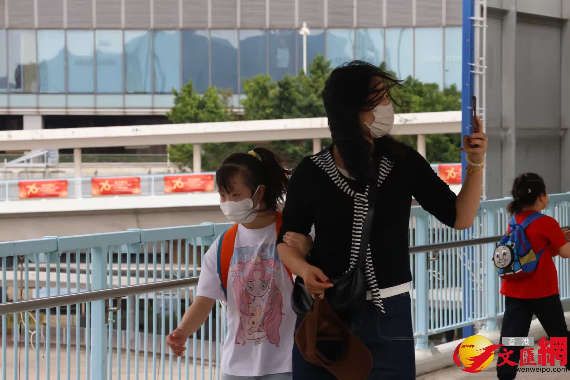 天文台今日16時45分表示,三號強風信號會至少維持至今晚十時。隨後天文台會視乎麥德姆的強度、其烈風區與珠江口的距離及本地風力變化,評估是否需要改發更高熱帶氣旋警告信號。圖為市民出行。香港文匯報記者萬霜靈 攝