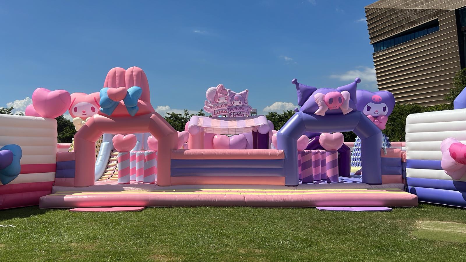 如天氣好的話,園區內布滿以她們可愛形象設計的巨型充氣裝置,包括高達3米的夢幻攀爬塔、充滿彈性的趣味彈彈橋,以及散發着夢幻光彩的DJ台。大小朋友們可在這片彩虹般絢麗的彈跳天地中肆意蹦跳、探索,享受無拘無束的純真樂趣,感受滿滿的治癒幸福感。