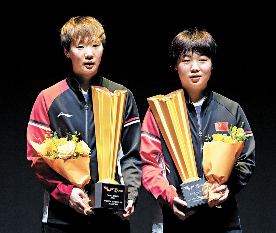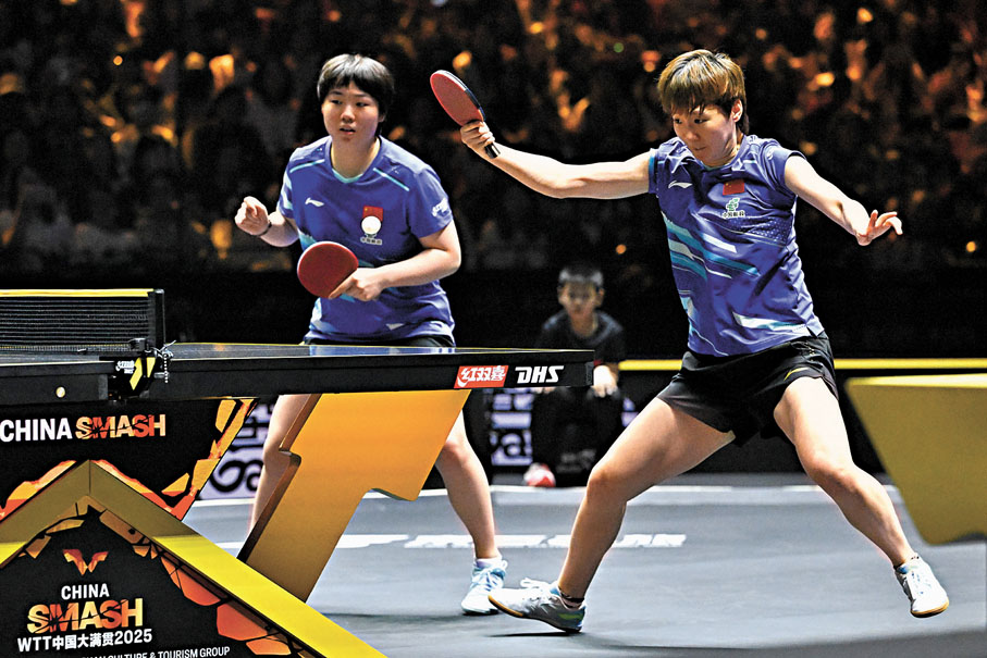 2025WTT中國大滿貫女雙決賽4日在北京石景山首鋼園舉行,世界排名第一的中國組合王曼昱/蒯曼歷經四局鏖戰,在先失一局後奮起直追,以3:1力克首次拍檔的日韓組合早田希娜/朱芊曦,成功斬獲冠軍。