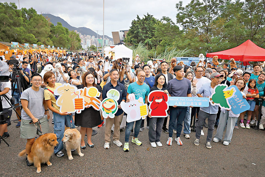 由昨日開始舉行的「西九寵物俱樂部—人寵步行嘉年華」以中秋為主題設置打卡裝置,並有1.5米高的充氣大月亮與發光兔仔,以及設中秋寵物市集。參與嘉年華擺檔出售寵物零食的周小姐對香港文匯報記者表示,香港寵物經濟持續升溫,故主打網購的寵物用品店亦顯著受惠,她主力經營線上業務,憑藉「訂閱制送貨」模式,即使面對整體經濟波動,生意仍持續上漲,更計劃與寵物友善餐廳合作,進一步拓展市場。