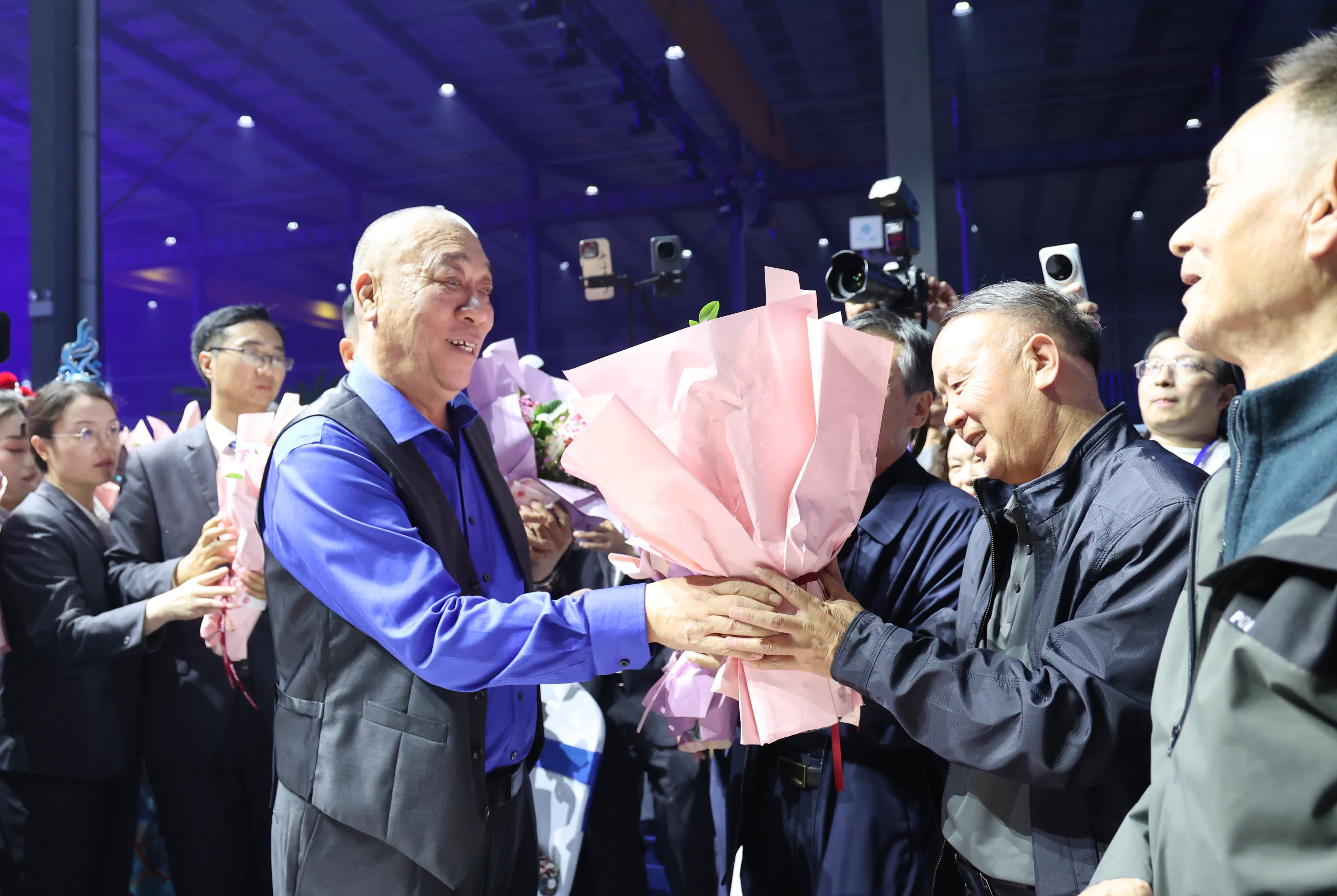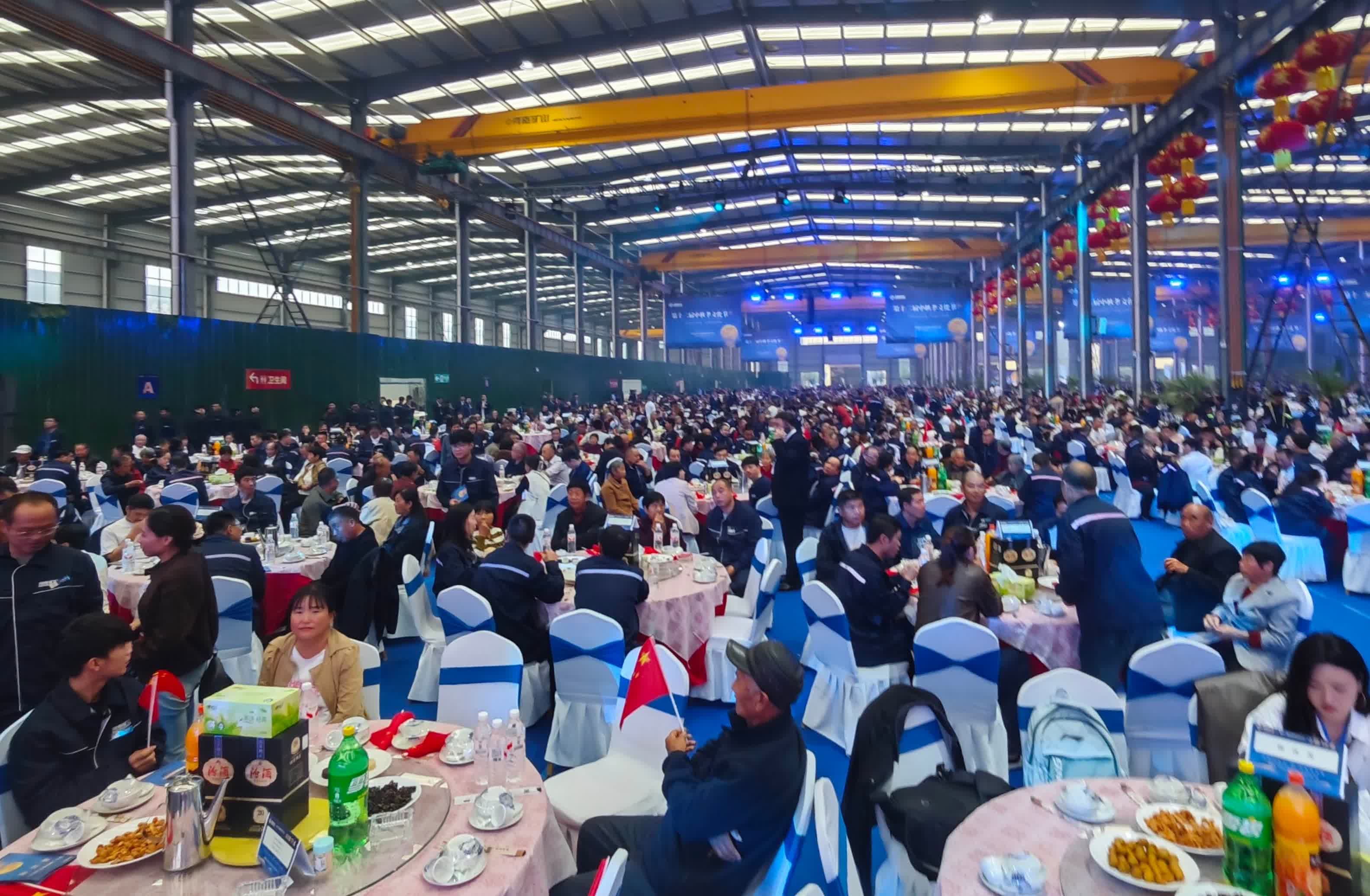 (香港文匯網記者劉蕊 河南報道)「員工就是企業的核心!」河南省礦山起重機有限公司在長垣市齒傳重工起重生態產業鏈先進製造業示範園的一個車間內,連續兩天擺下逾千桌宴席,逾19000名員工與父母同桌吃團圓飯。河南礦山起重機有限公司創辦人崔培軍逐桌鞠躬,向每位員工父母奉上600元「孝金」及鮮花,兩天花掉1200萬元人民幣。這場已堅持12年的「中秋孝文化節」,再度衝上內地社交平台熱搜,網民封他「最願意發錢的老闆」。