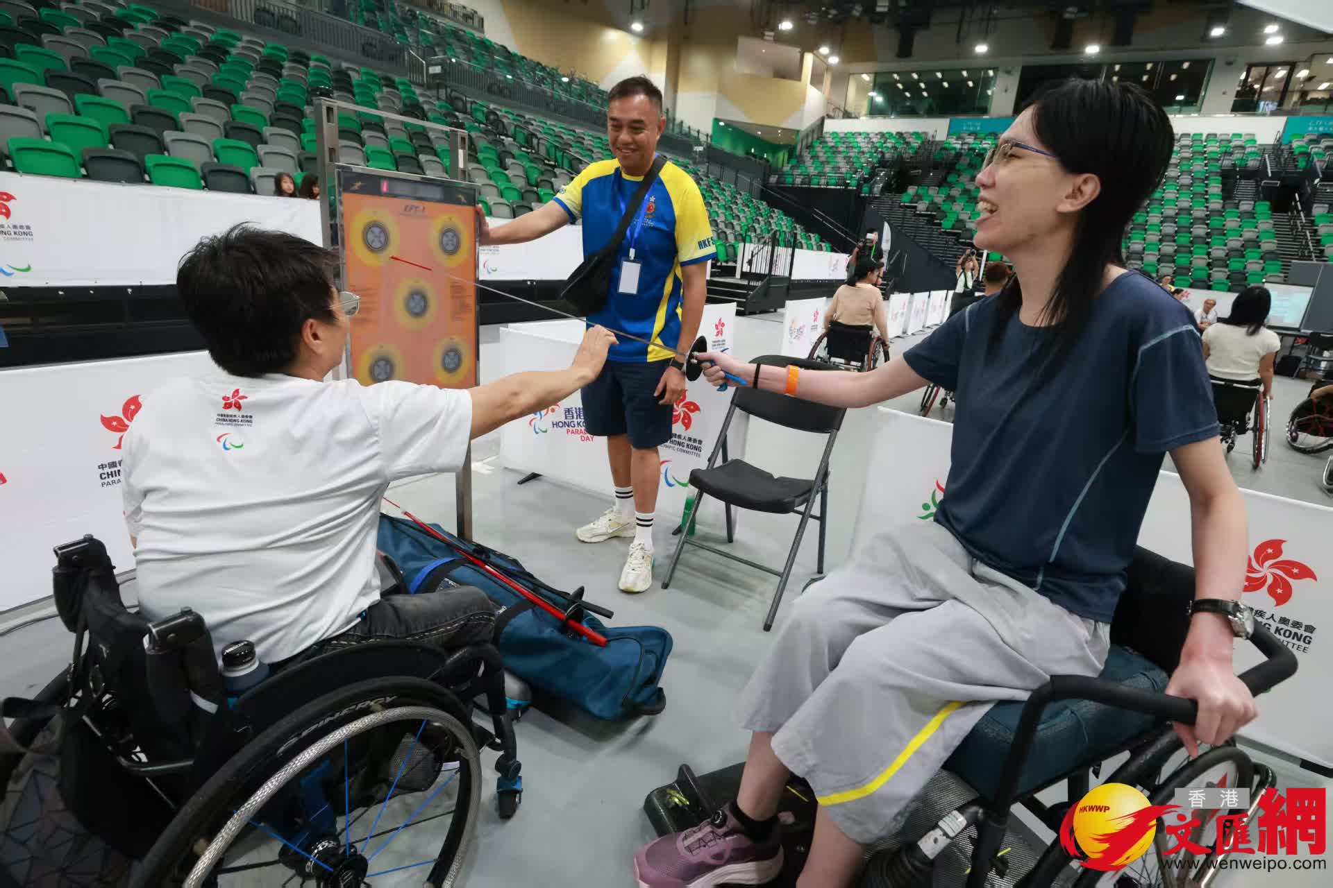 不少市民提早數月報名參與,其中一位視障人士向香港文匯報分享體驗輪椅劍擊的感受:「第一次試玩劍擊,才發現難度頗高,而且劍很重,但過程充滿樂趣。」