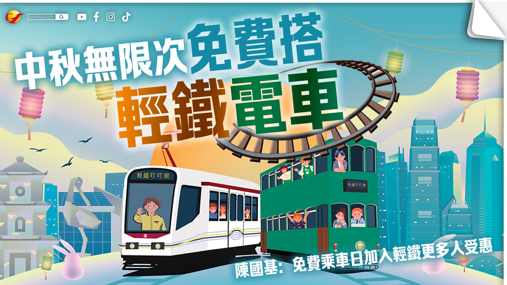 明日(6日)中秋節,人人都可以免費搭輕鐵,約齊親友一齊遊車河賞月,開心過節啦。免費乘車時段由10月6日頭班車起生效至23時59分(以入站的顯示時間為準),可無限次免費乘搭。詳情可瀏覽網頁。使用八達通卡的乘客則應如常拍卡出入輕鐵站;沒有八達通卡的乘客可無需購票直接乘搭輕鐵。