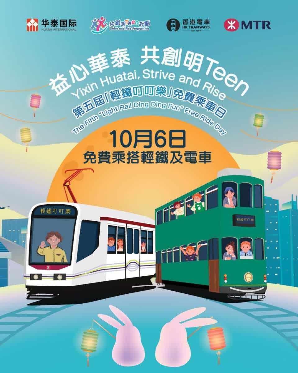 香港文匯報訊 企業支持北部都會區發展,中秋節請巿民免費搭輕鐵外出渡佳節及賞月,10月6日當天進出輕鐵站時無需購買車票或支付車費。由華泰國際、港鐵以及香港電車聯合主辦第五屆「輕鐵叮叮樂」免費乘車日活動,今日(5日)在屯門輕鐵車廠站舉行啟動禮。主禮嘉賓政務司司長陳國基致辭時說,「輕鐵叮叮樂」活動自2021年起舉辦至今,已經來到第五屆,今年首次將輕鐵納入免費乘車日,活動範圍由港島延伸至新界西北,讓更多市民受惠,進一步促進社會的連結與融合,也體現企業對社會的關懷。