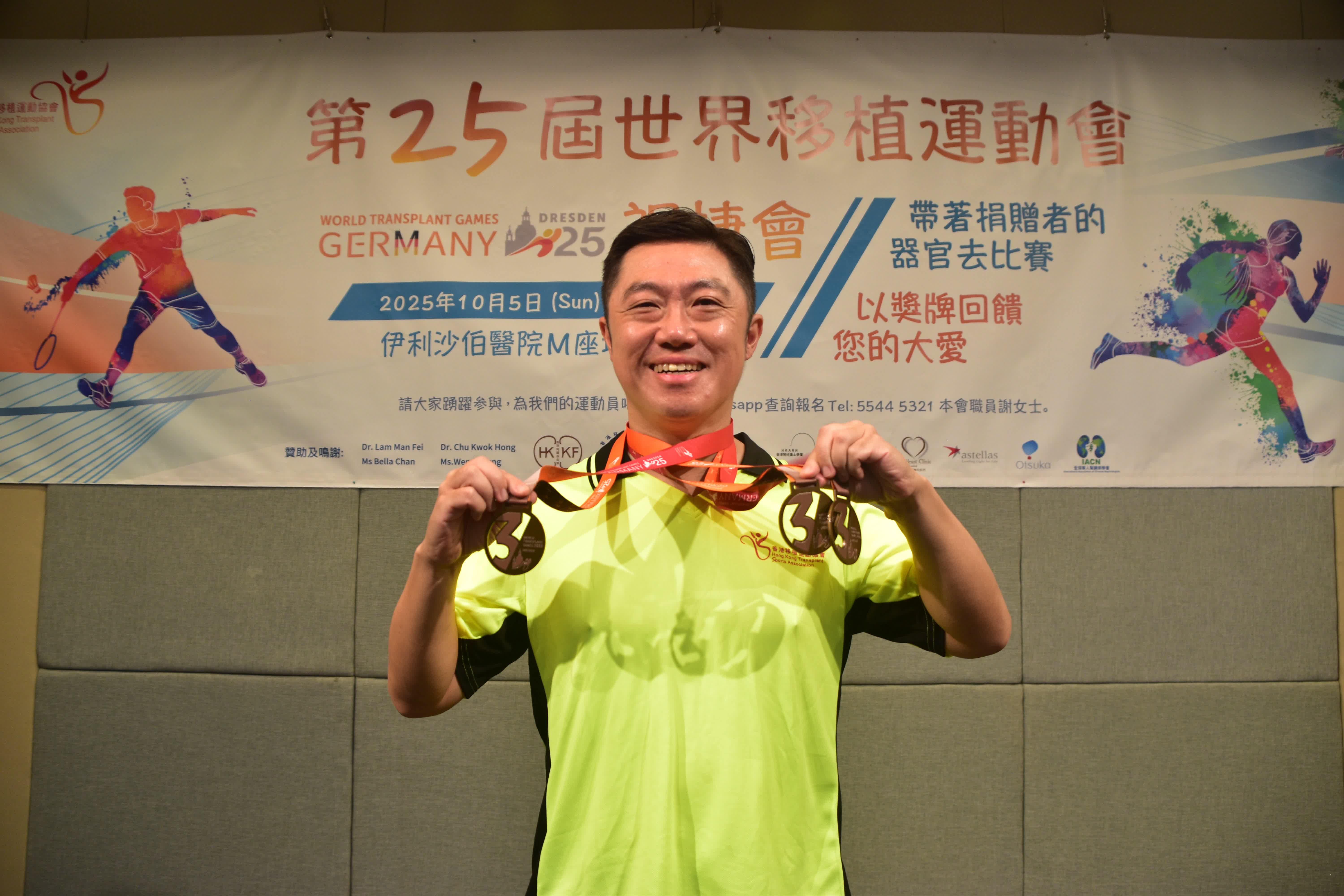 協會主席黃炎華向各方支持者致謝,「感謝各位善長慷慨支持,讓我們可以帶領更多移植康復者飛出香港;多謝一班義工,由組織、招募、出發,與及比賽過程中的所有支援工作;更要感謝所有醫護人員,幫助我們由病床走到運動場上。」