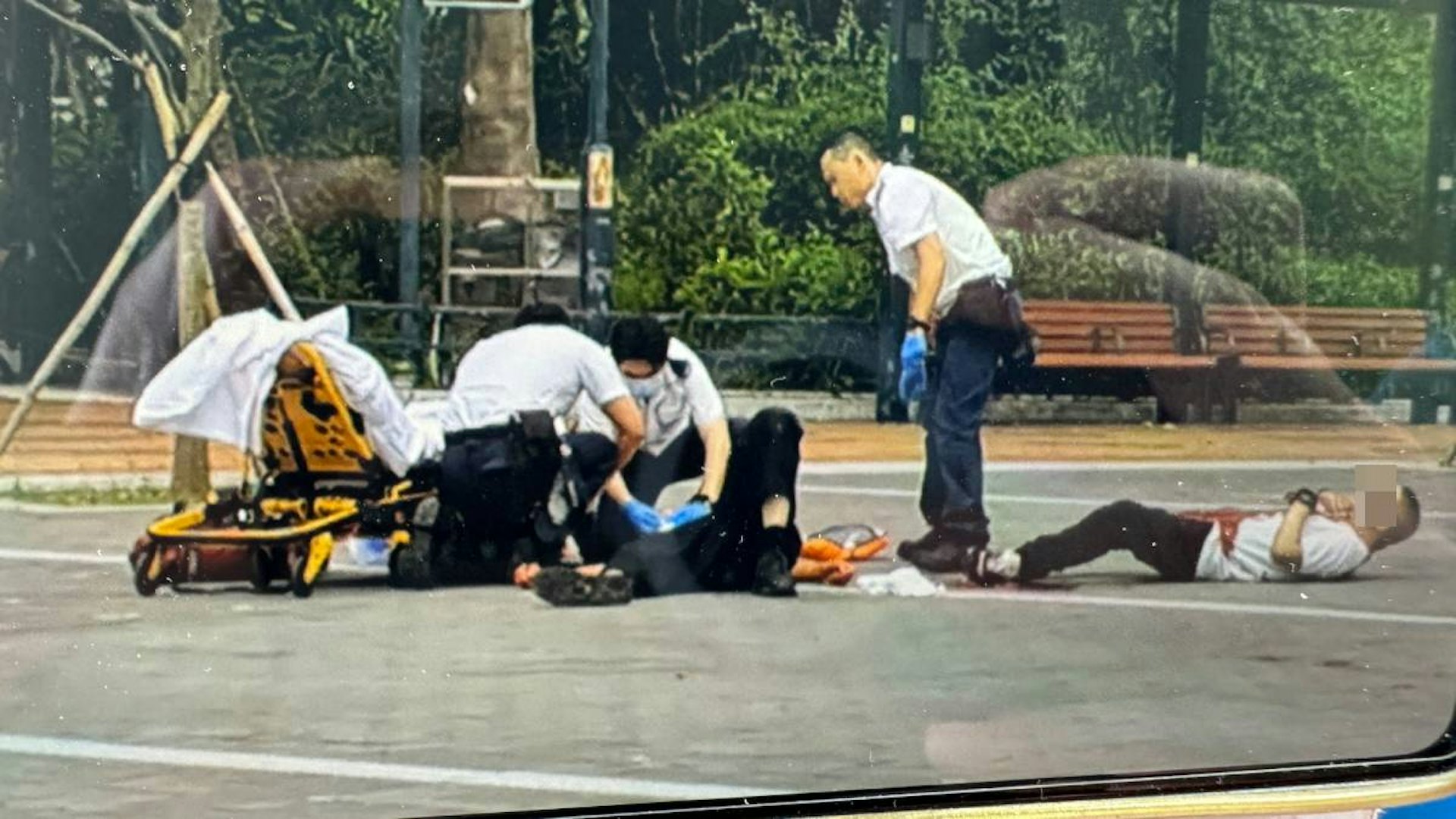 案發昨日中午約12時30分,有途人經過旭日街海心公園時,赫見涼亭棋盤桌附近倒卧兩名受傷流血的男子。另有一名手部染血、疑似是兇徒的男子,沿海邊往庇利街方向逃去。