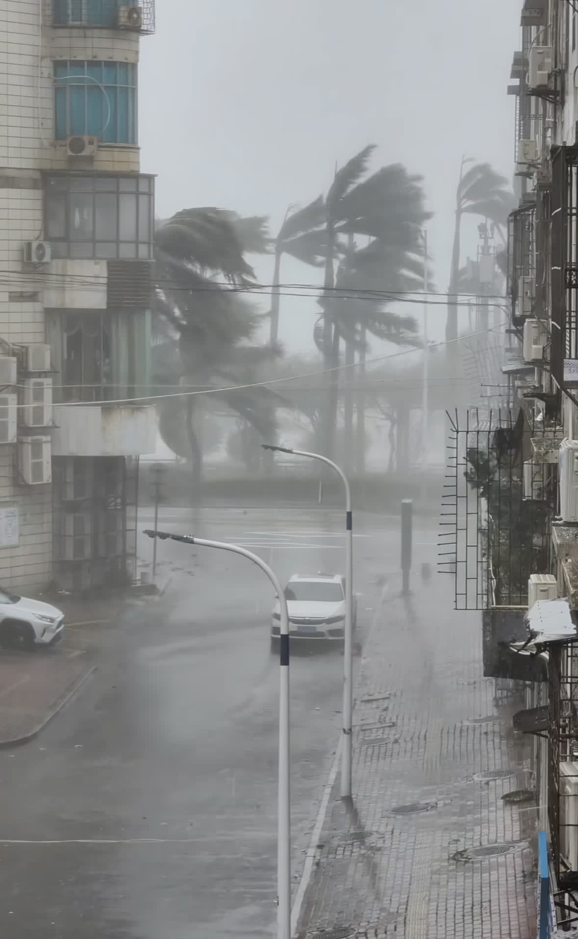 5日上午開始,湛江沿海浪高風急、暴雨傾盆。颱風登陸後,位於沿海的湛江吳川市覃巴鎮梅樓村、大山江街道良美村發生海水倒灌,洶湧的海水湧上岸堤,岸邊不少建築物都出現了水浸。記者從不少網友分享的視頻看到,颱風帶來的暴風雨非常猛烈,斜射的暴雨形成白茫茫的雨霧,棕櫚樹和樹木幾乎被吹彎了一半。有高層住宅的圍欄、窗戶被吹飛,不少民眾家中的窗戶還被吹爆,狂風雨不斷被灌進來。不少酒店樓下的停車區車輛也被淹沒了一半。