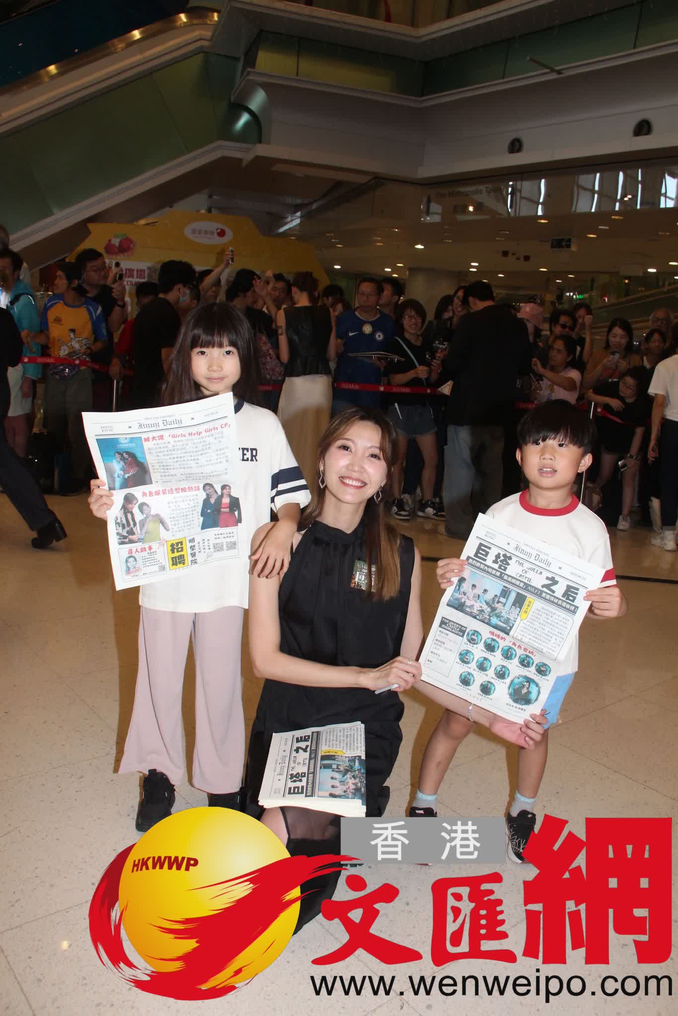 香港文匯報訊(記者 達里)宣萱、吳若希、蔣家旻、陳楨怡等人今日到商場宣傳新劇《巨塔之后》,吸引大批粉絲到場,吳若希也帶一對子女來活動。大會同時公布劇集收視有21點,成績不俗。宣萱高興稱劇集有好成績,期望收視可以繼續攀升。而宣萱與陳煒有不少對手戲,宣萱直言在片場經常要睜開眼盯實對方,「眼神殺」太累。
