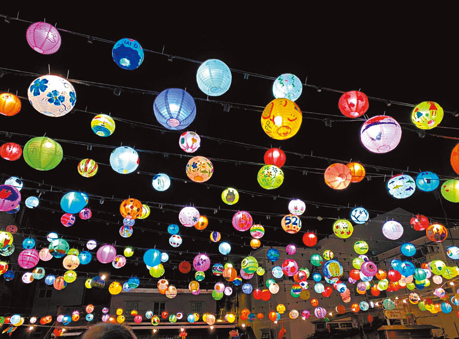 願香港精神在,真善仁美在小城樓宇間掛上了大銀盤,人世間張燈結綵,每個燈籠都是節日的祝福,太多百姓奔波勞碌為生話,中秋節要藉由月亮光華的溫柔,溫熱孤單隻影的形體啊﹗想起李白的「床前明月光,舉頭望明月」照我漫步,勝過鬧市中秋燈飾閃閃亮,卷上詩書那月光,千里照顧平民人生意願:蘇軾詞「但願人長久,千里共嬋娟」真有意思,家庭成員為生活天各一方,距離遠而心靠近,父母子女心靈相通互祝禱,明月千里寄思念,不相見而能共對月,心頭通感,得慰藉解苦思念啊!