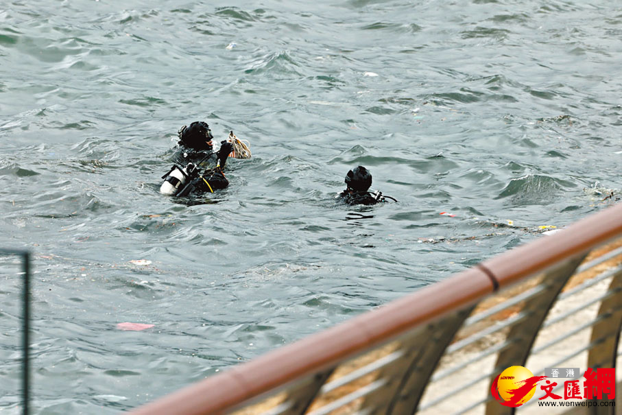 昨日早上約9時許,西九龍總區重案組探員重回海心公園涼亭調查蒐證,另外飛虎隊的「水鬼隊」亦奉命到場,在三號風球下潛落海底協助搜尋疑兇拋落海的一把兇刀。賈錦琳稱,由於海面風浪大,加上海底有很厚的淤泥,暫時無發現兇器,稍後會安排進一步搜索。