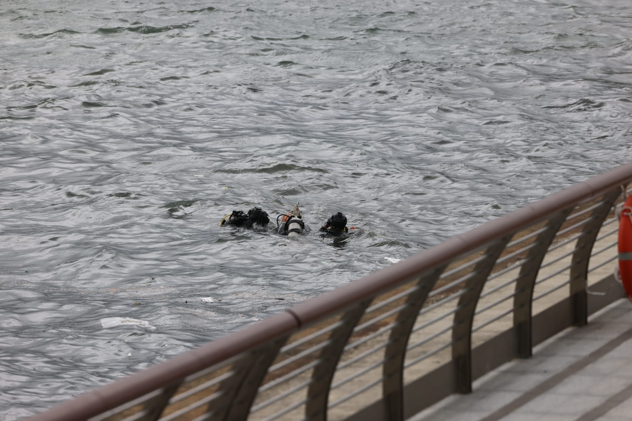 警方相信疑兇逃走時,曾將一把如手掌大小兇器抛入海中,昨日召援飛老虎隊的「水鬼隊」到海心公園對開的海邊潛入水底搜尋兇刀。惟因當時三號風球下海面風高浪急,加上海底淤泥較厚,因此未能找到兇器,稍後會繼續安排搜索。