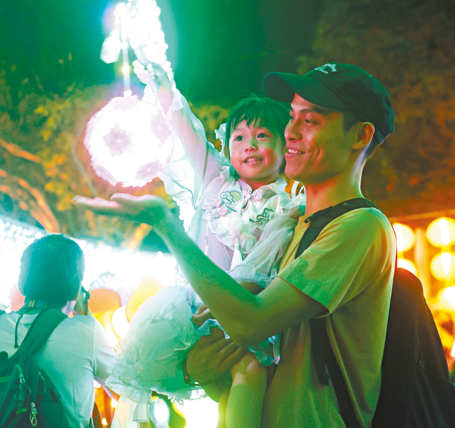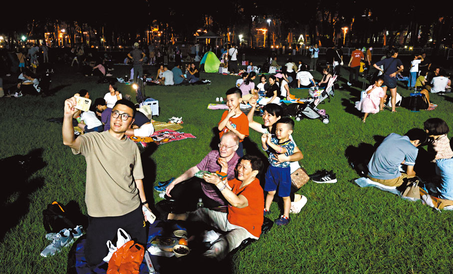 香港文匯報記者昨晚在維園直擊,未到下午6時維園內已遊人如鯽,不少人一家大細帶備燈籠在草地席地而坐,天公作美,市民一邊享用月餅,一邊觀賞「超級月亮」。不少市民及旅客則在維園多組綵燈前打卡,有旅客一家趁黃金周長假期來港旅行,特意到維園觀賞燈飾,認為綵燈製作精美,中秋氣氛熱烈。大坑火龍昨晚亦在中秋正日舞動,晚上10時30分更舞入維園,吸引大批市民和旅客在大街小巷觀賞。