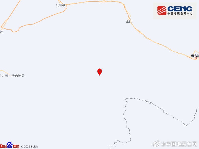 中國地震台網正式測定:10月7日5時41分,在甘肅酒泉市肅北縣(北緯39.54度,東經96.51度)發生3.1級地震,震源深度10千米。