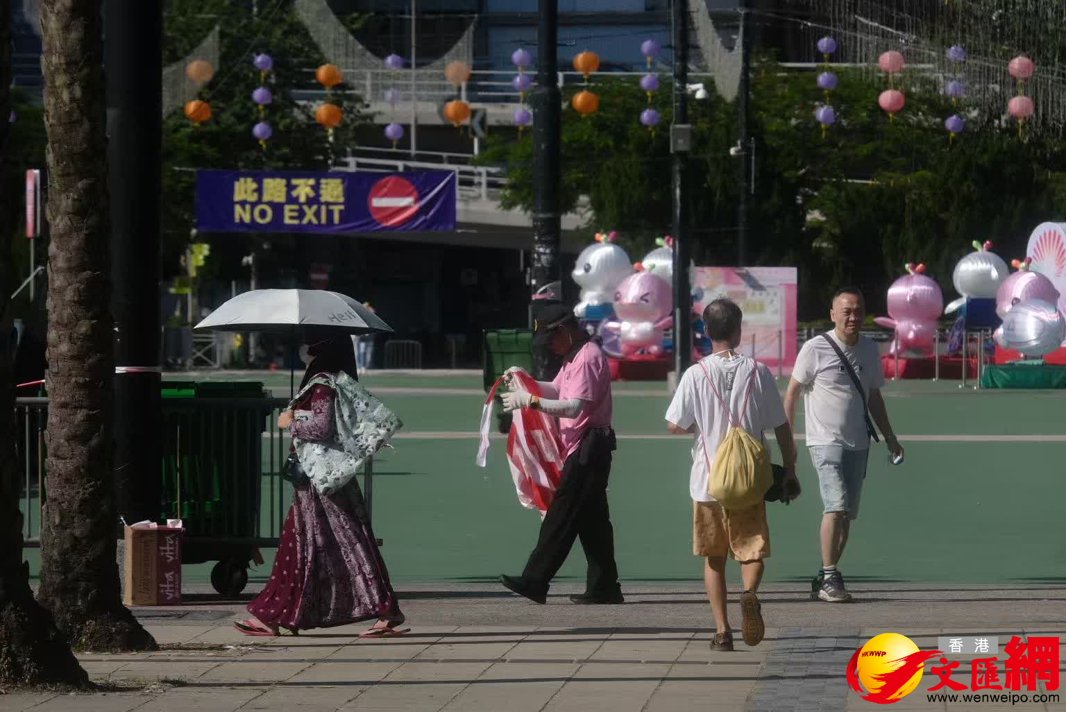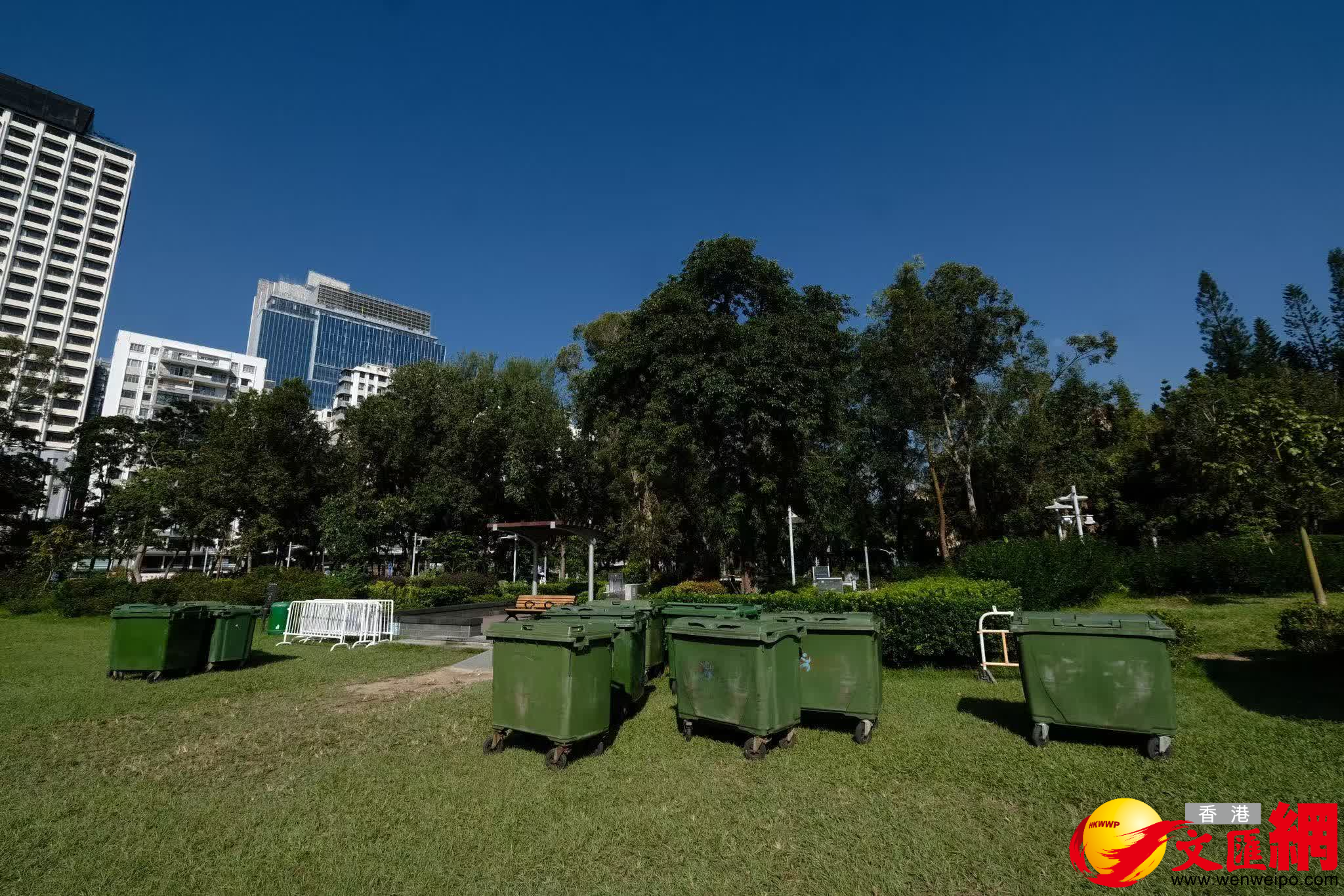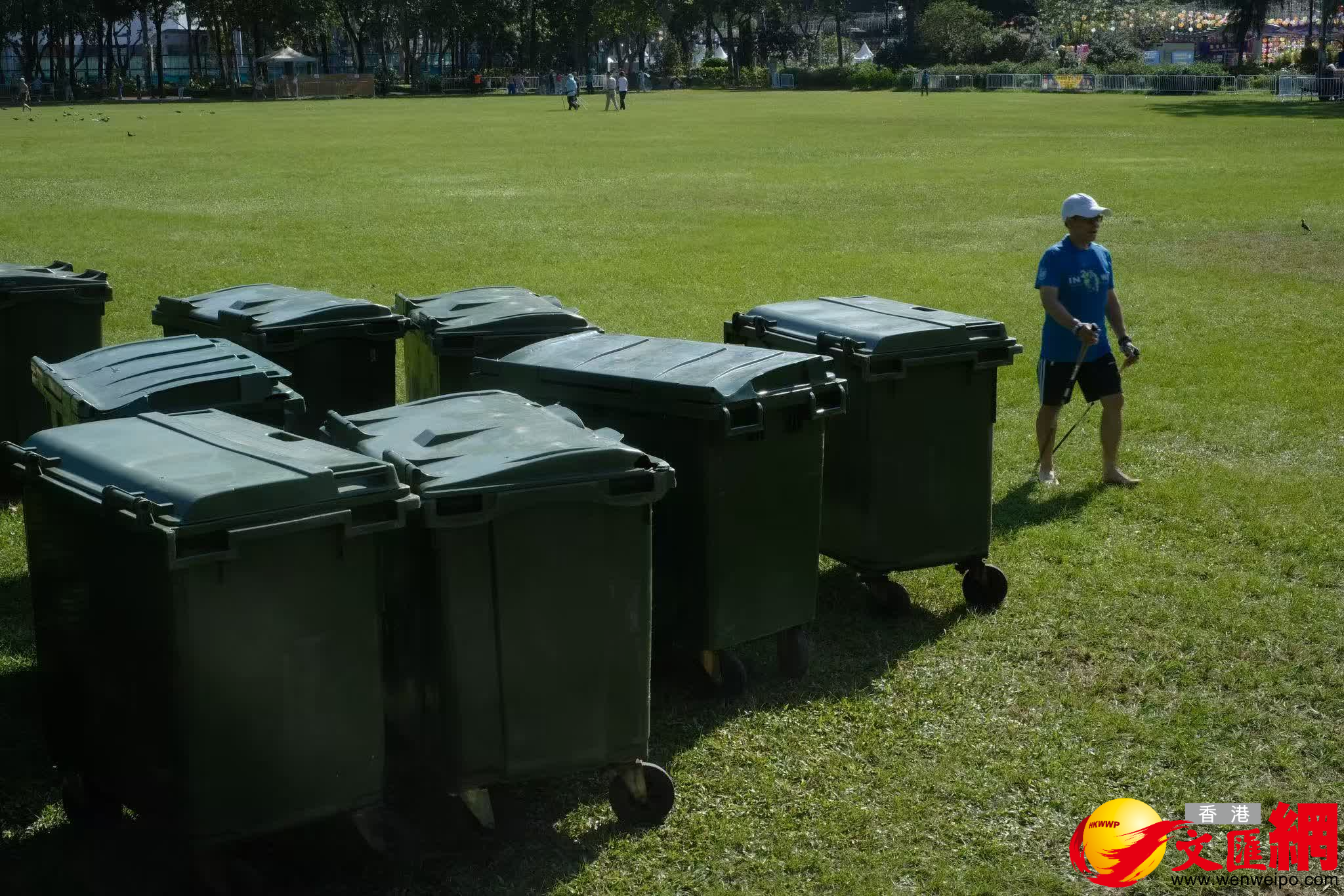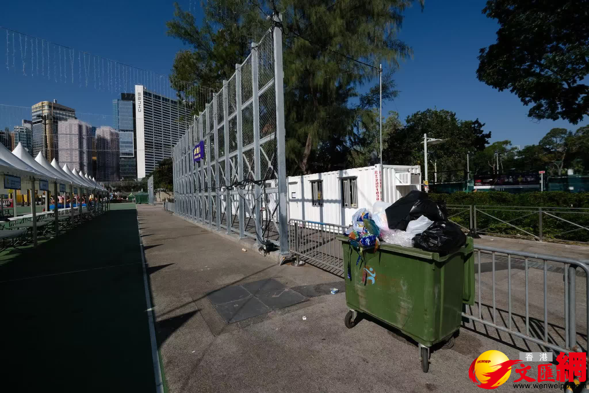 記者圍繞維園觀察,遠眺整個場地地面大致乾淨、無異物,只在隱蔽角落發現少許殘留的奶茶杯、可樂罐等。維園現場亦放置多個垃圾桶,方便市民隨手棄置,垃圾桶內大部分為燈籠燈節日裝飾。