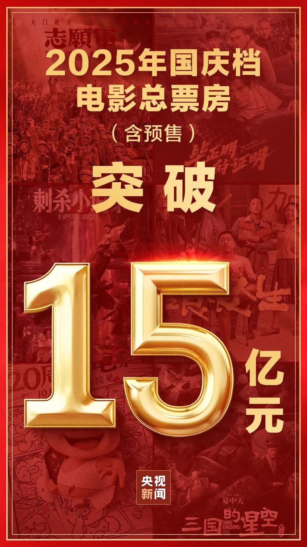 截至10月6日17時28分,2025年國慶檔檔期總票房(含預售)已突破15億元。國慶與中秋雙節疊加的8天假期,類型多樣的電影佳作扎堆上映為家庭觀影提供了更多選擇,使國慶檔電影票房表現亮眼。
