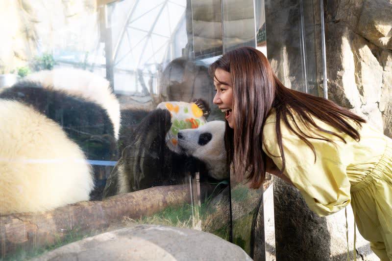在參觀熊貓居住環境時,翠如驚喜地發現:「原來熊貓的住所規劃得相當完善,分為8間專屬房間。」最令她印象深刻的是護理員以目標棒引導熊貓完成張口檢查、量體溫等互動,非常有趣,熊貓的配合度更是令人驚喜。因護理過程禁止拍攝,所以今次特別請來「有心熊貓」作示範。