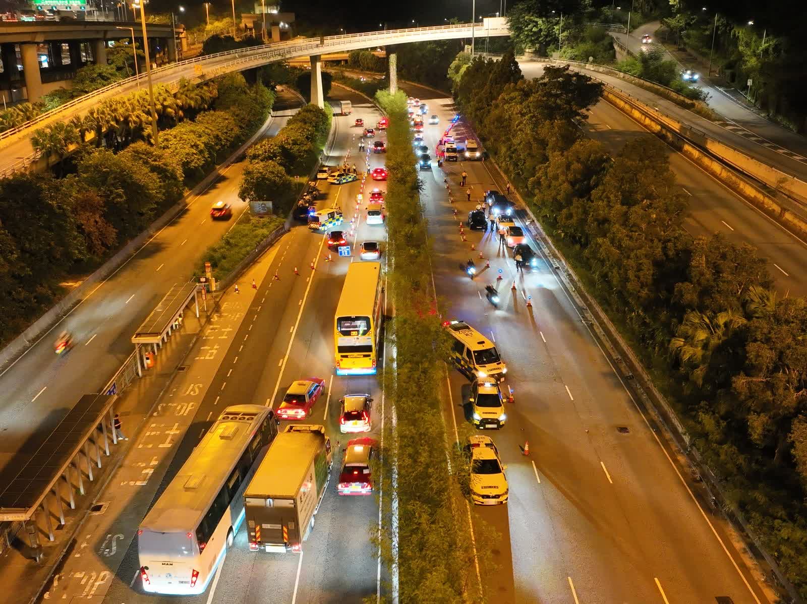 香港文匯報訊(記者 蕭景源)新界南及九龍西交通部執行及管制組人員,為打擊酒後駕駛、毒後駕駛及非法賽車,於本月5日及6日一連兩日在區內主要幹道設置路障、截查可疑車輛及進行打擊非法賽車行動,並為駕駛人士進行酒精呼氣測試,以打擊相關罪行。新界南交通部執行及管制組特遣隊同時在行動中使用無人機配合執法。