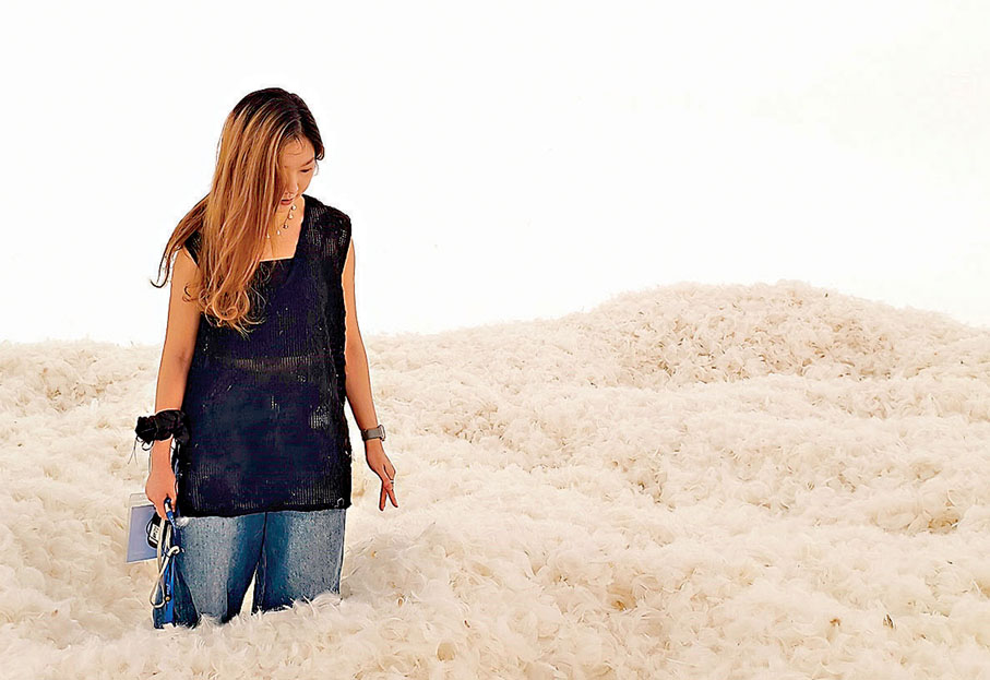 複製版美國籍藝術家朱迪·芝加哥的《羽毛室》是一個純白色的空間,鋪有300磅以零殘忍方式提取的鵝毛,原作採用的則是雞毛。觀眾可踏入這堆「柔軟」中,感受女性藝術家平和的內心。空間外還為觀眾配備了除毛滾筒。