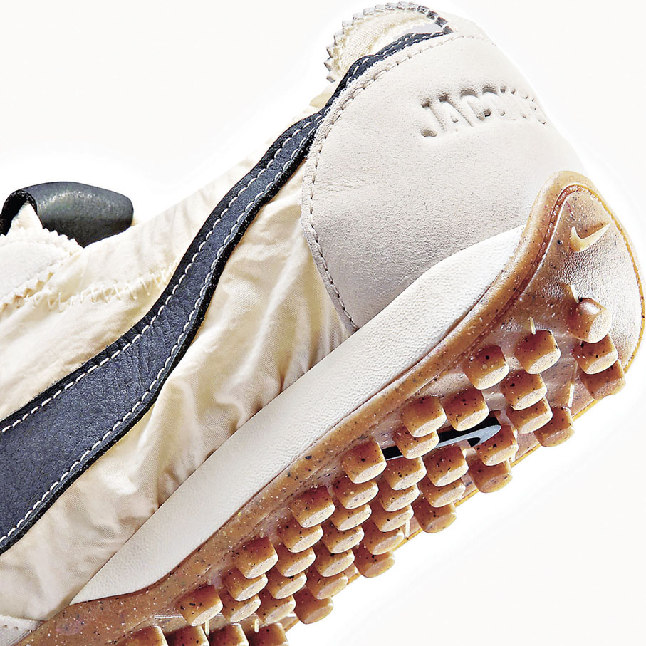 全新鞋款在細節上融入了Jacquemus的標誌性設計。鞋側配有皮革Swoosh和後跟支撐,鞋舌、鞋跟與鞋墊均印有Jacquemus標誌。延續歷史情懷,鞋盒採用品牌聯乘專屬包裝,向Nike的前身「藍帶體育用品公司 」(Blue Ribbon Sports )致敬。