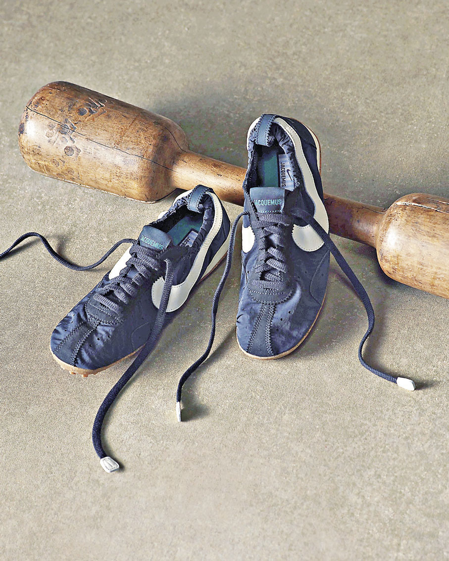 新一代 Moon Shoe採用褶皺尼龍鞋面與Nike Regrind外底,將競速血統與現代芭蕾的美學融合,打造出一款貼地而流線的現代鞋形,既展現了Jacquemus極簡的巴黎設計哲學,也彰顯了Nike的運動傳承與活力。