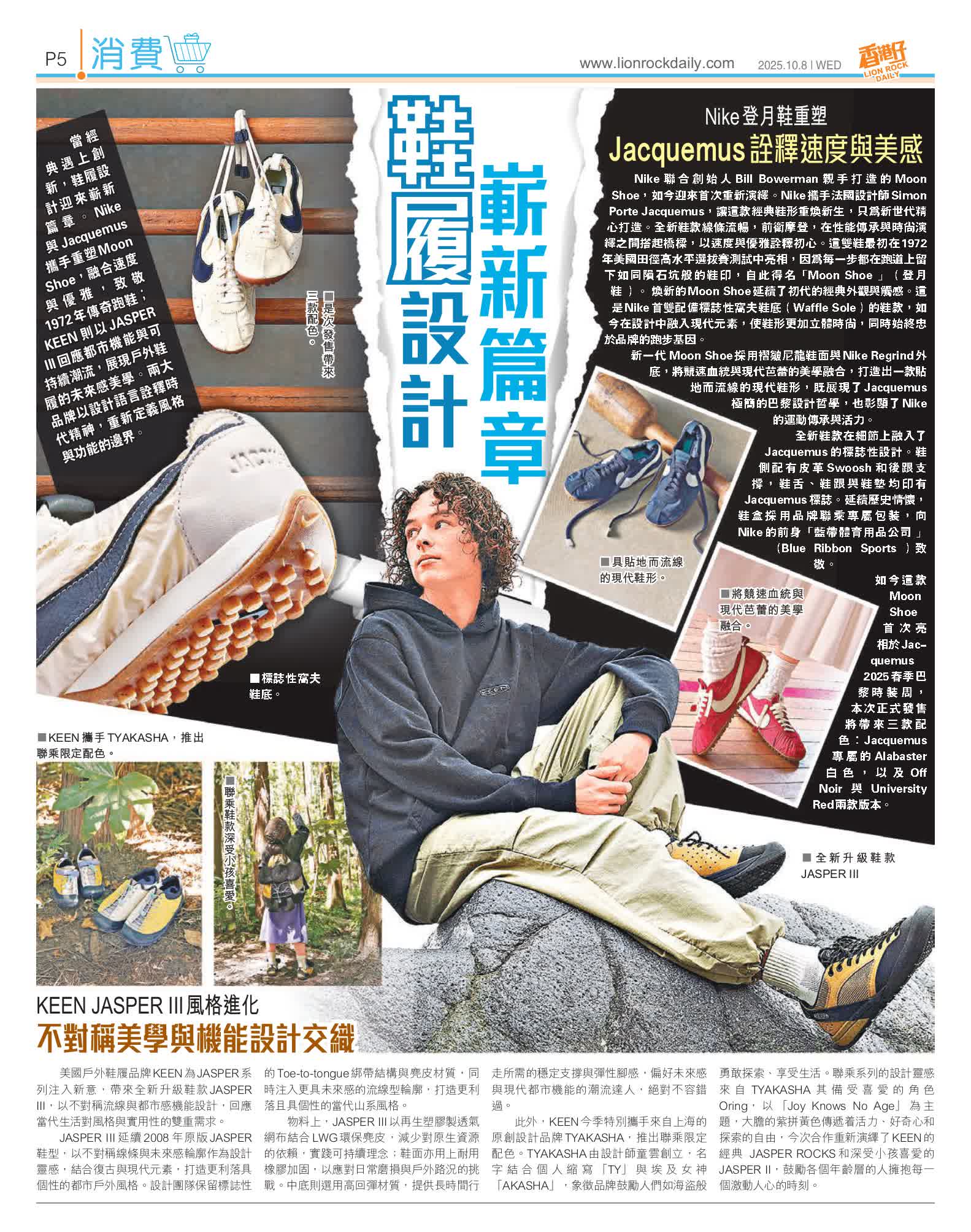 當經典遇上創新,鞋履設計迎來嶄新篇章。Nike與Jacquemus攜手重塑Moon Shoe,融合速度與優雅,致敬1972年傳奇跑鞋;KEEN則以JASPER III回應都市機能與可持續潮流,展現戶外鞋履的未來感美學。兩大品牌以設計語言詮釋時代精神,重新定義風格與功能的邊界。
